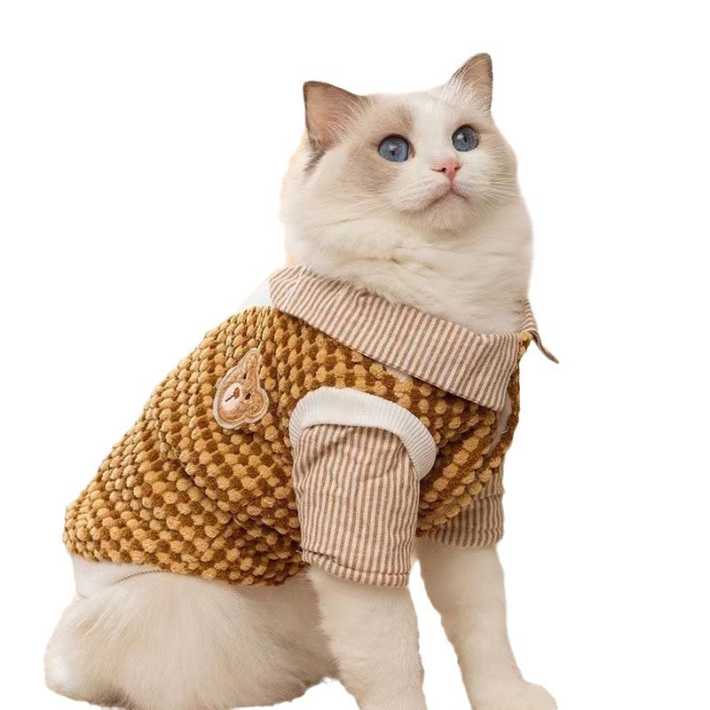 귀여운 만화 기모 개 고양이 가을과 겨울 따뜻한 두꺼운면 패딩 옷 애완 동물 고양이 미디어와 작은 개 테디 베어스토어 가기