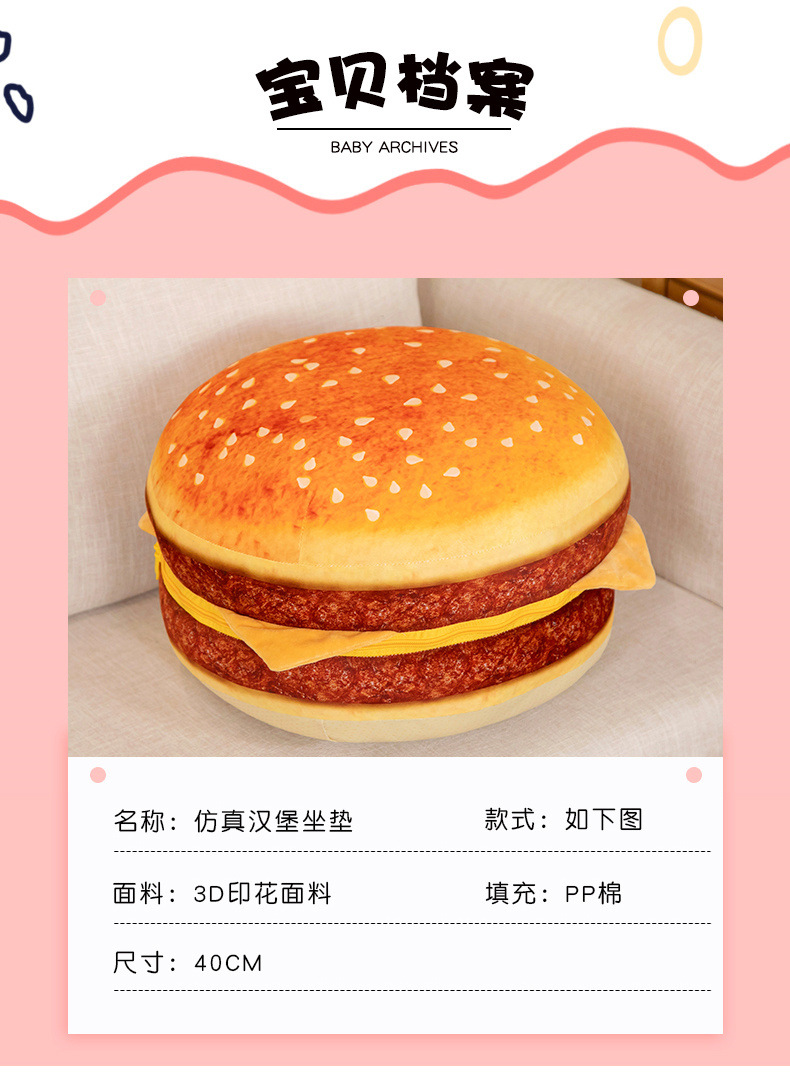 시뮬레이션 대형 햄버거 쿠션 만화 봉제 장난감 햄버거 쿠션 어린이 휴일 선물 베개 도매스토어 가기