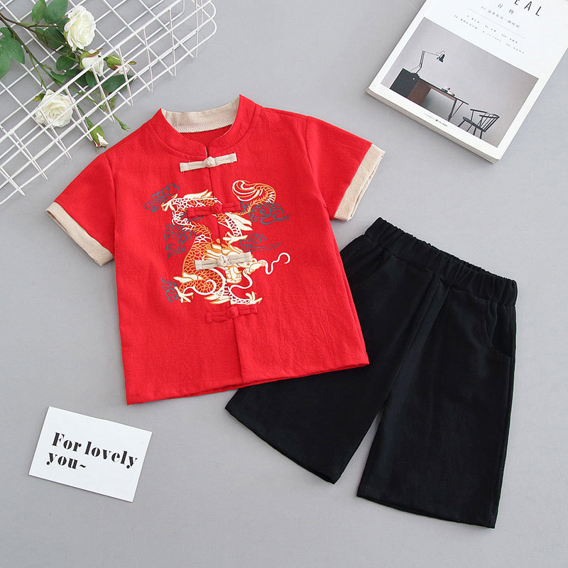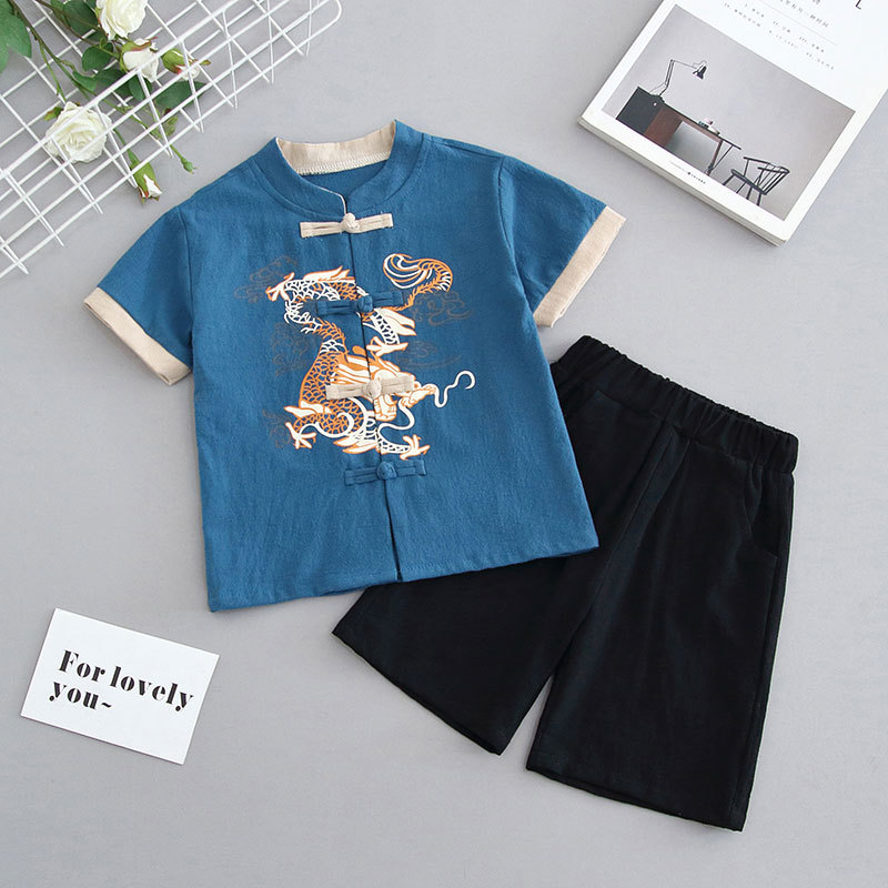 어린이 한푸 소년 반팔 중국 스타일 2023 새로운 고대 의상 세트 아기 탕 세트 여름 의상 고대 스타일 의상스토어 가기