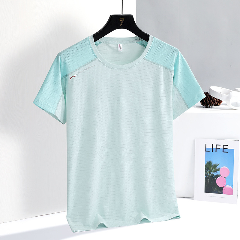 2023 새로운 남성과 여성의 아이스 실크 반팔 티셔츠 플러스 사이즈 빠른 건조 야외 스포츠 에어컨 반소매 시원한 반소매 여성