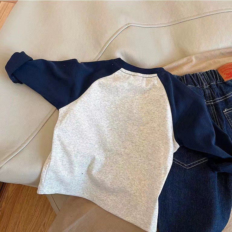 소년 소녀 컬러 매칭 탑 옷을위한 봄과 가을 유행 긴팔 티셔츠 아동용 캐주얼 코튼 바닥 셔츠스토어 가기