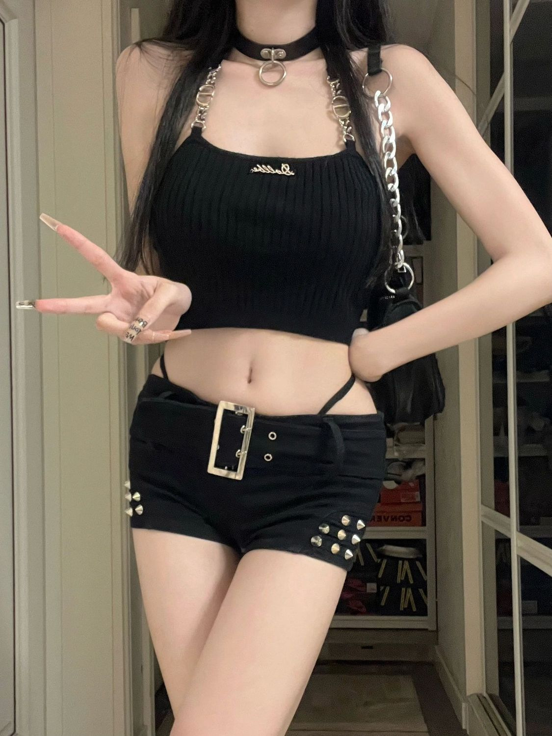 틈새 블랙 낮은 허리 엉덩이 슬리밍 핫 소녀 반바지 여성의 가을 새로운 슬림 핏 리벳 작은 청바지스토어 가기