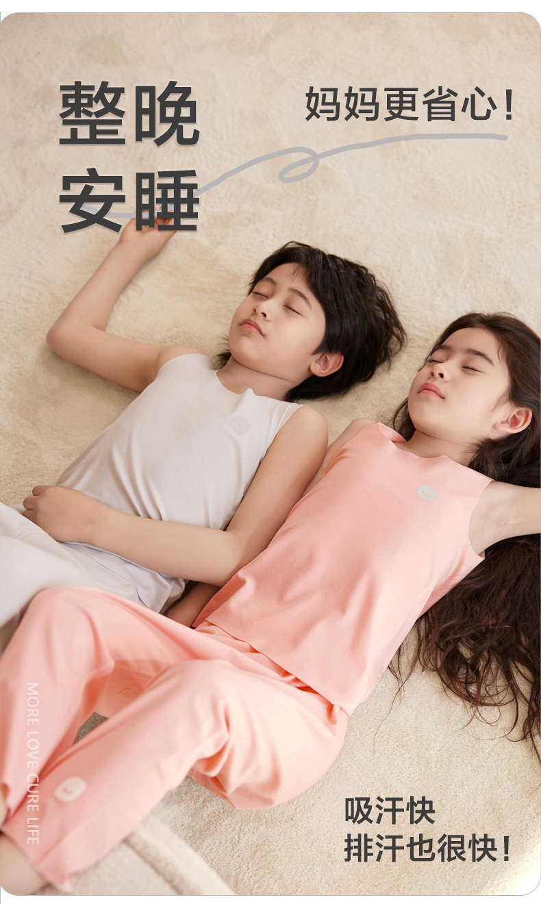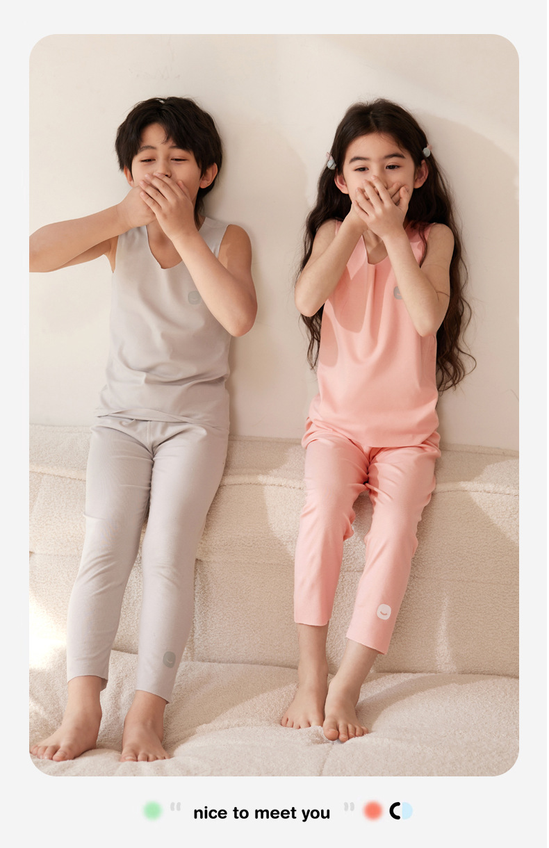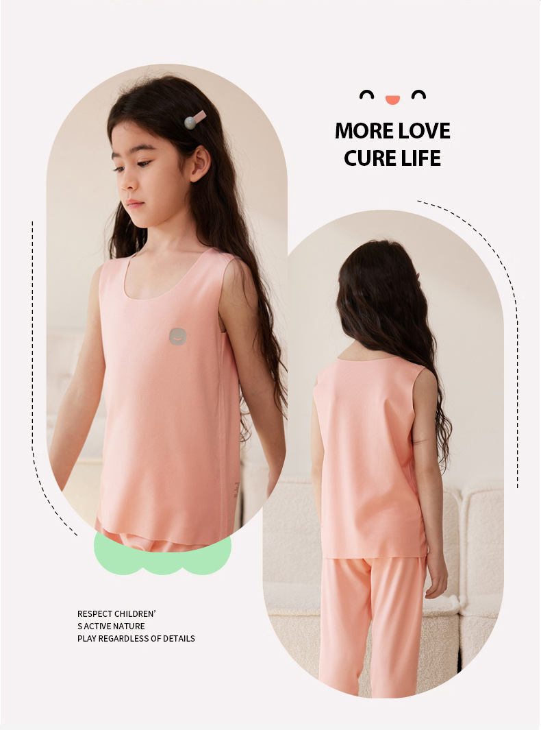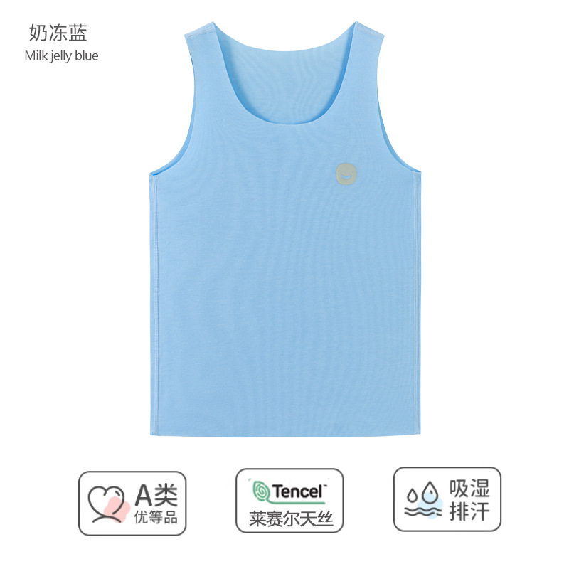 어린이 조끼 여름 Tencel lyocell 얇은 홈 웨어 소년 소녀 단색 캐주얼 민소매 바닥 탑