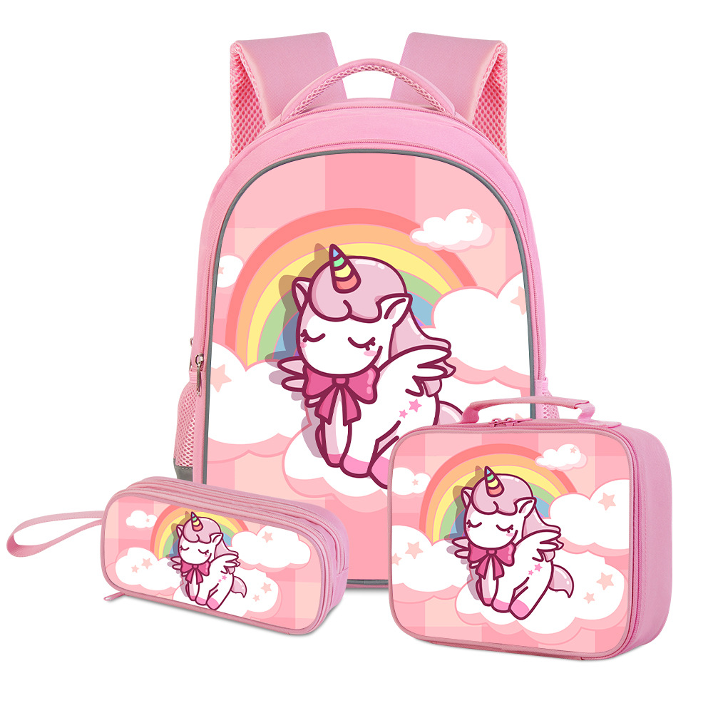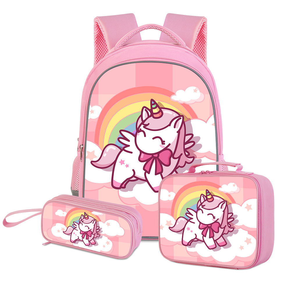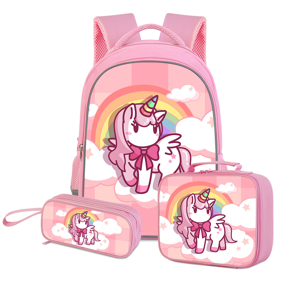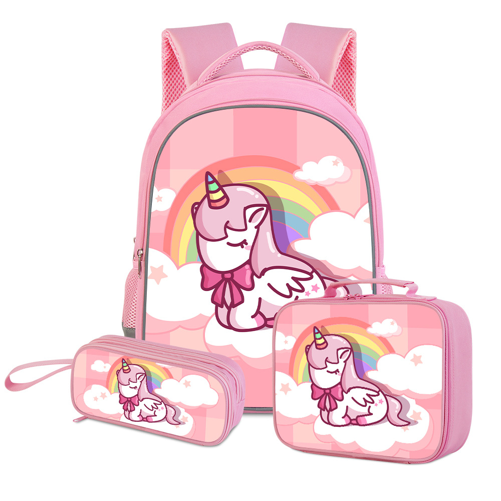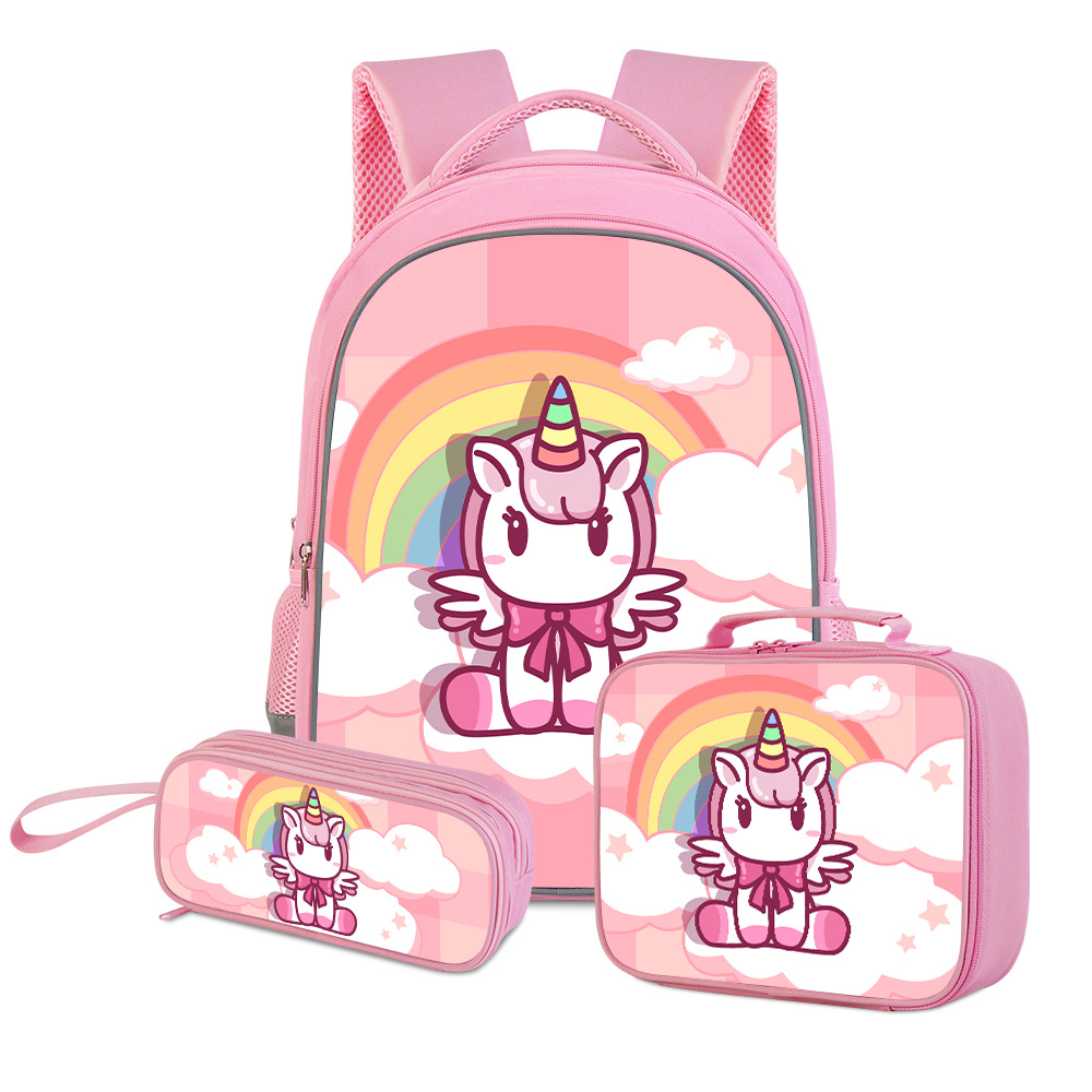 组合三件套卡通独角兽学生背包 双层背包餐包手提笔袋可印LOGO