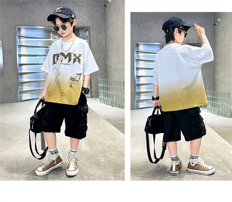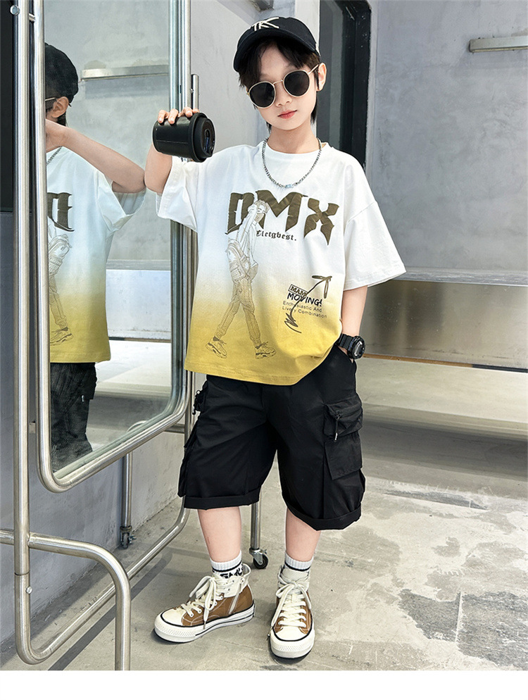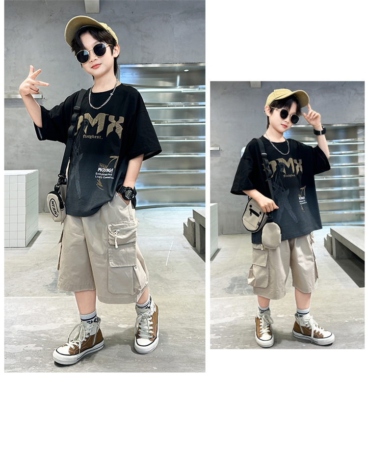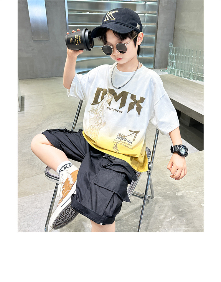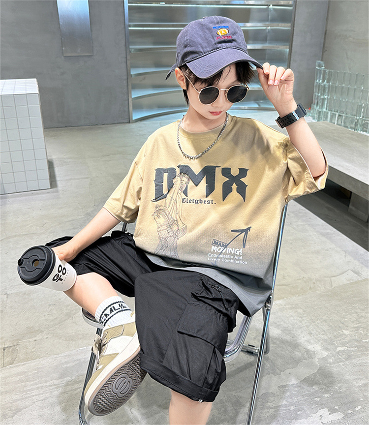 소년 여름 세트 2024 새로운 큰 어린이 서양식 잘 생긴 스포츠 캐주얼 편지 짧은 소매 티셔츠 투피스 세트 8