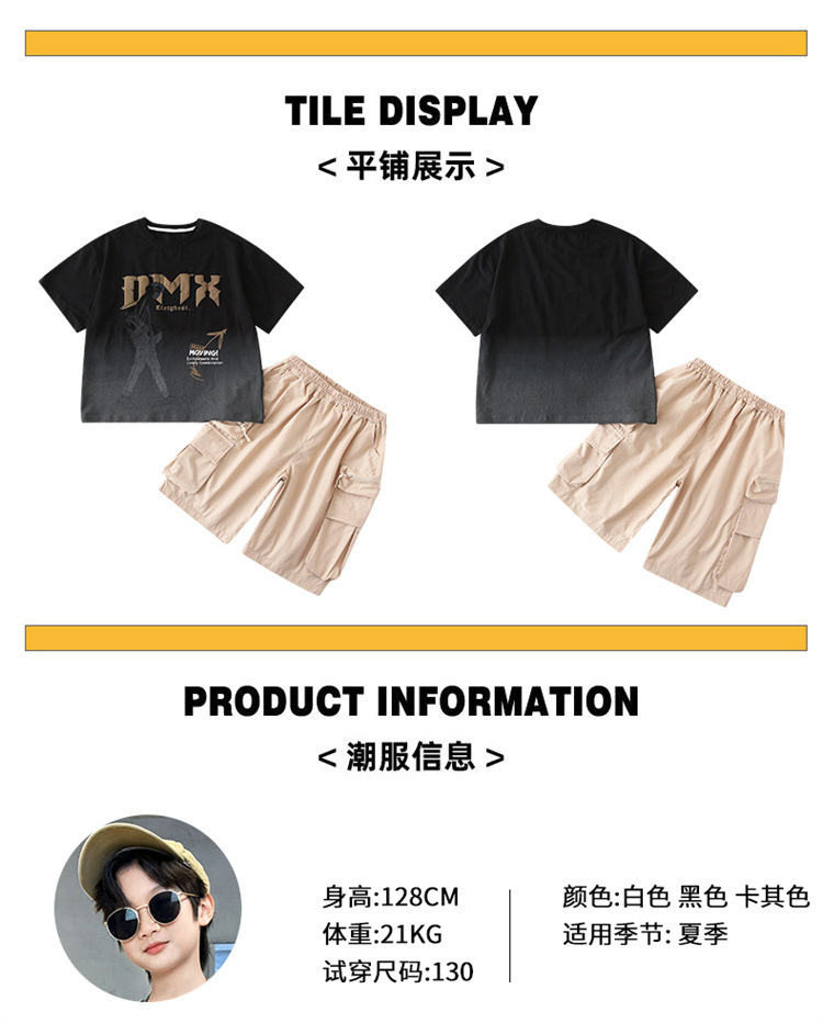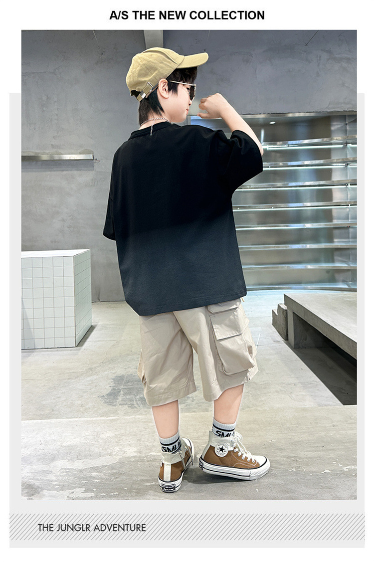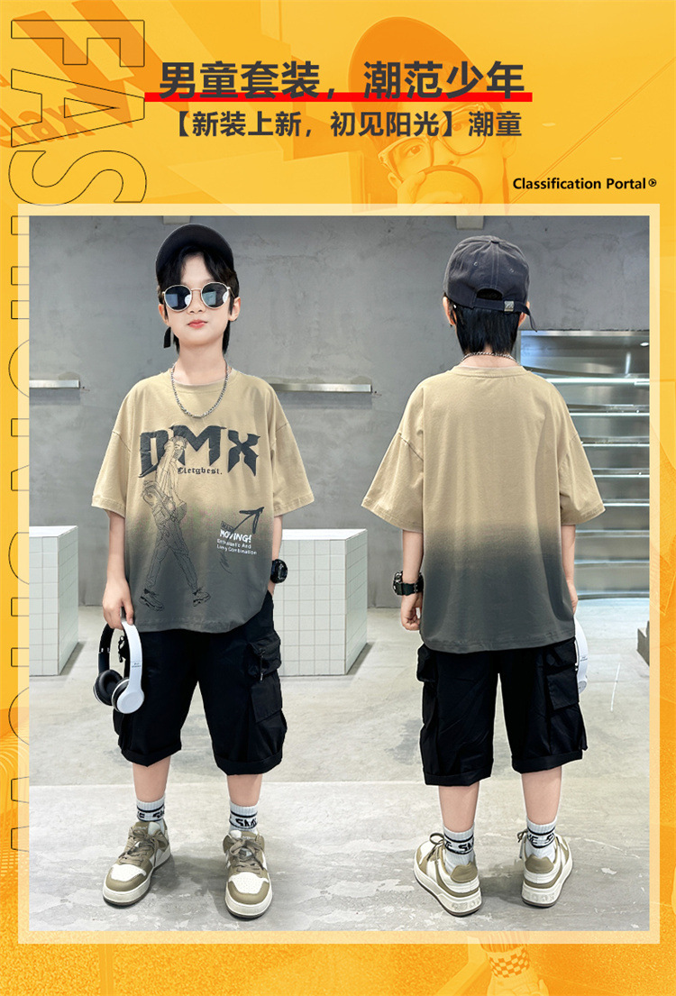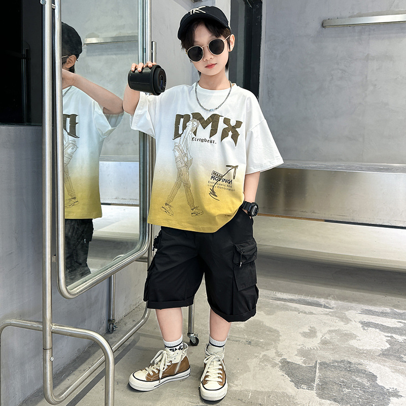 소년 여름 세트 2024 새로운 큰 어린이 서양식 잘 생긴 스포츠 캐주얼 편지 짧은 소매 티셔츠 투피스 세트 8