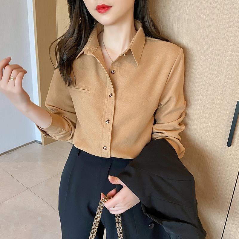 2024 셔츠 여성의 가을과 봄 새로운 캐주얼 올 매치 긴팔 브러쉬 셔츠 디자인 감각 틈새 코트 탑