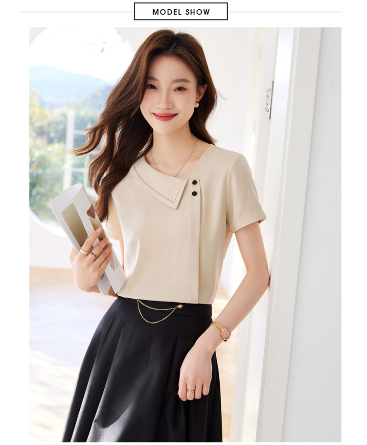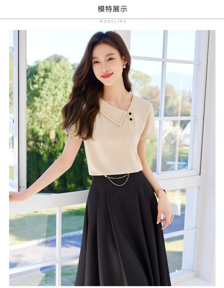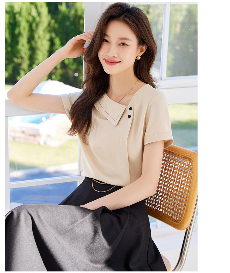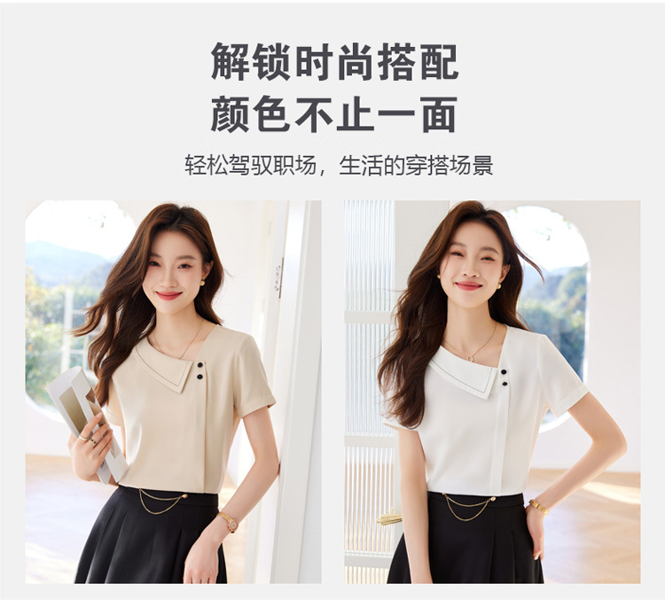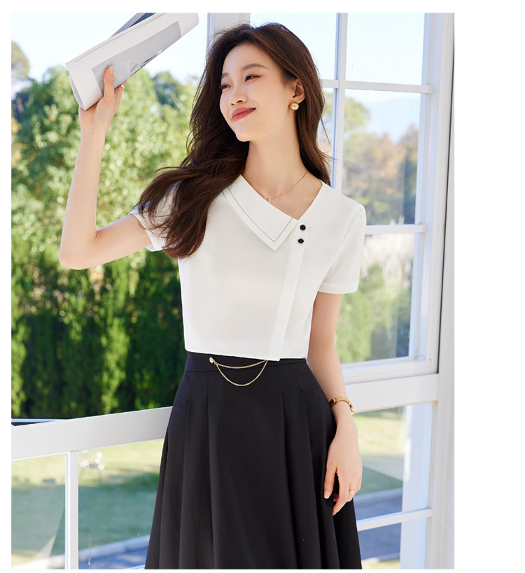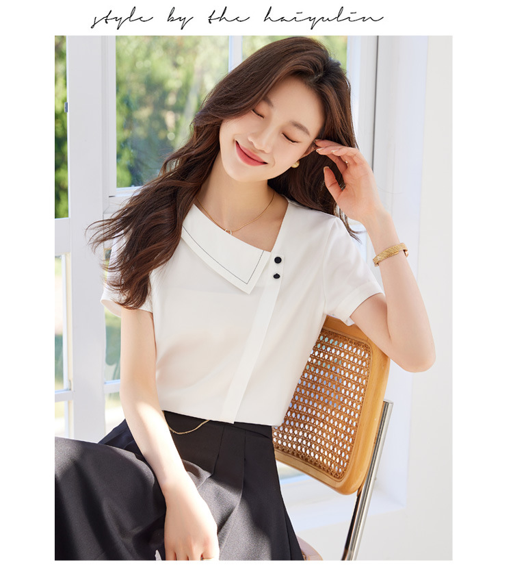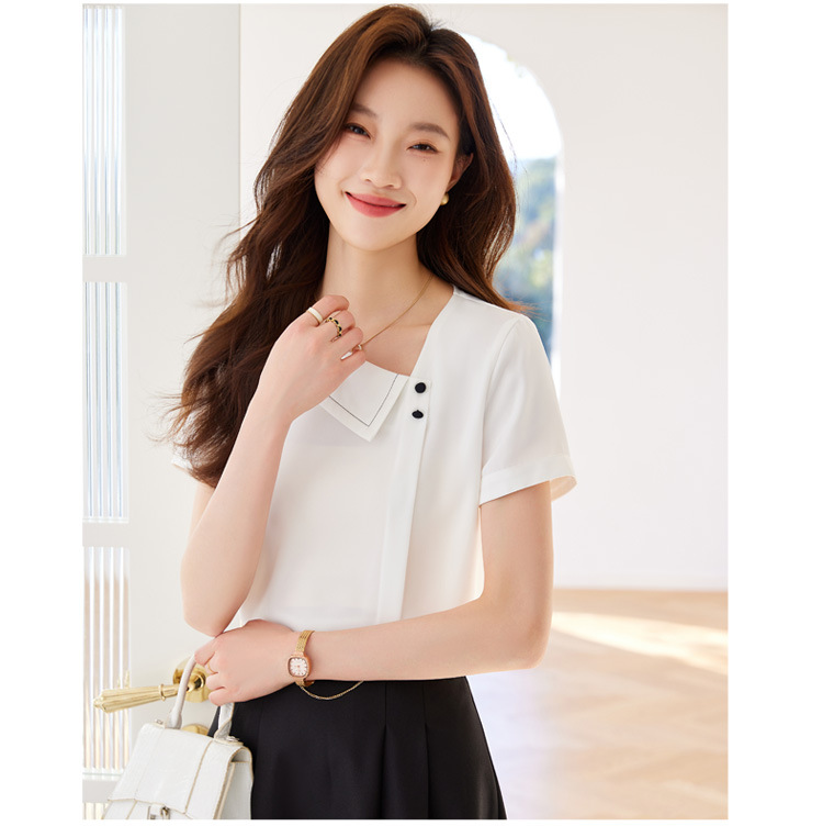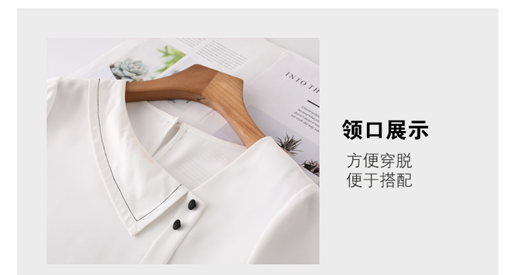 반팔 흰색 쉬폰 풀오버 여성 한국 스타일 유행 올 매치 레이디 스타일 달콤한 셔츠 세트 여름 새로운스토어 가기