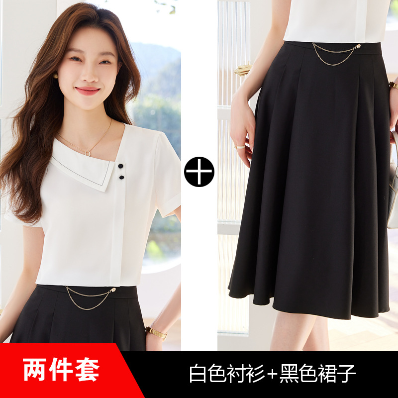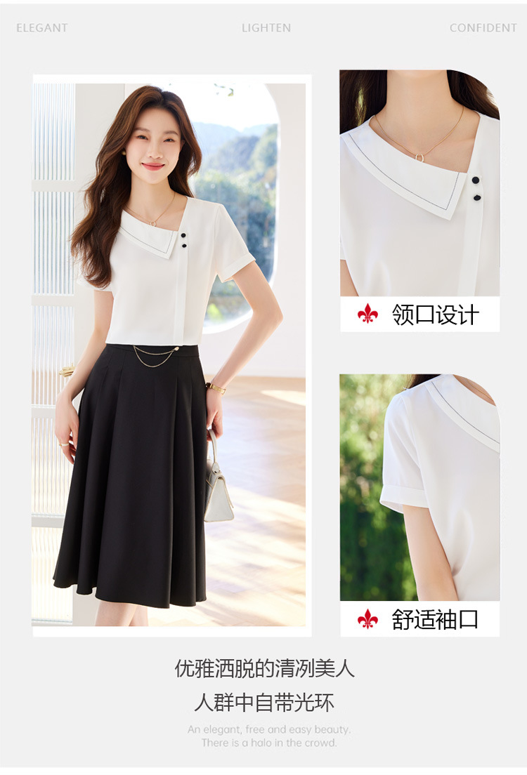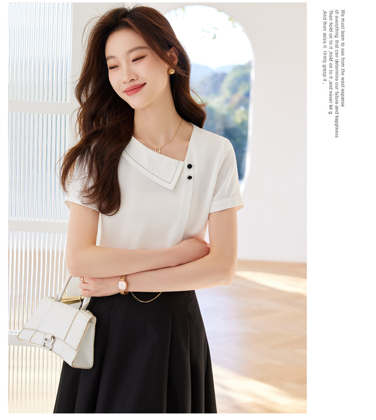 반팔 흰색 쉬폰 풀오버 여성 한국 스타일 유행 올 매치 레이디 스타일 달콤한 셔츠 세트 여름 새로운