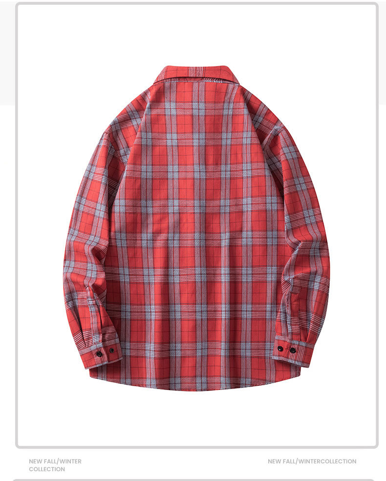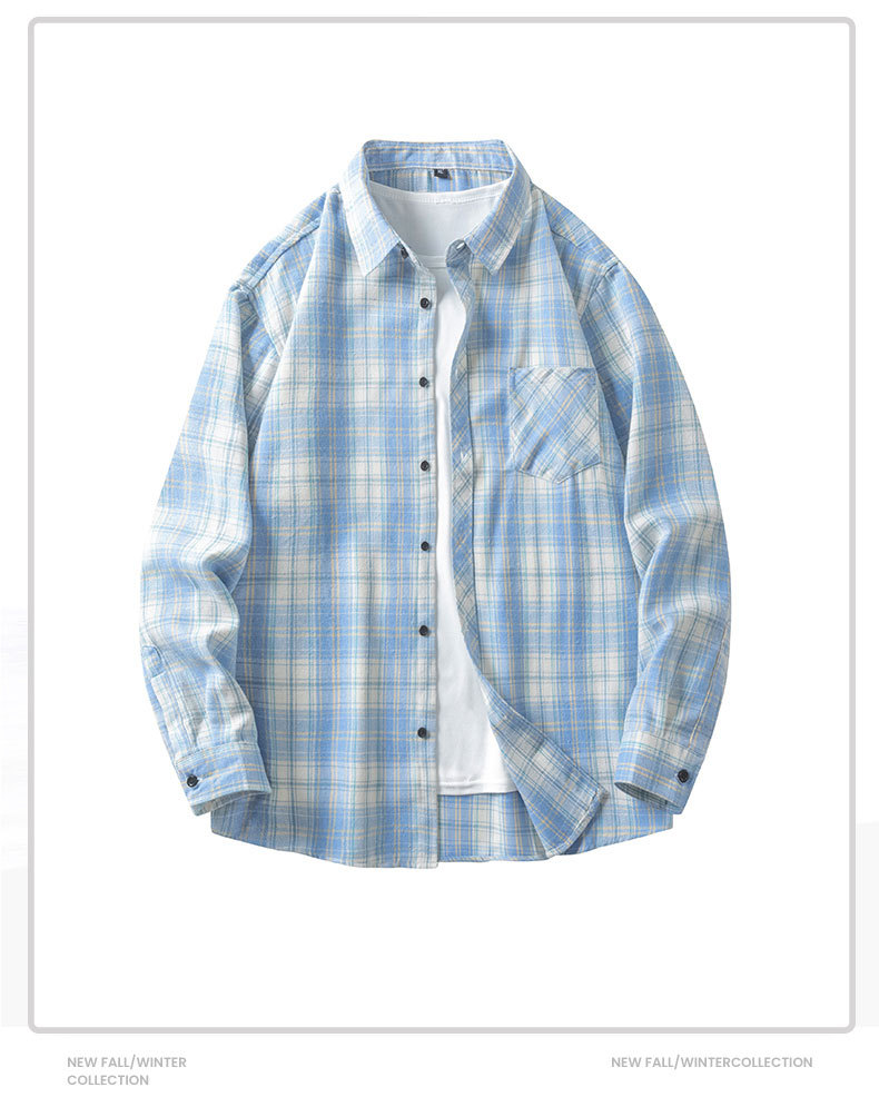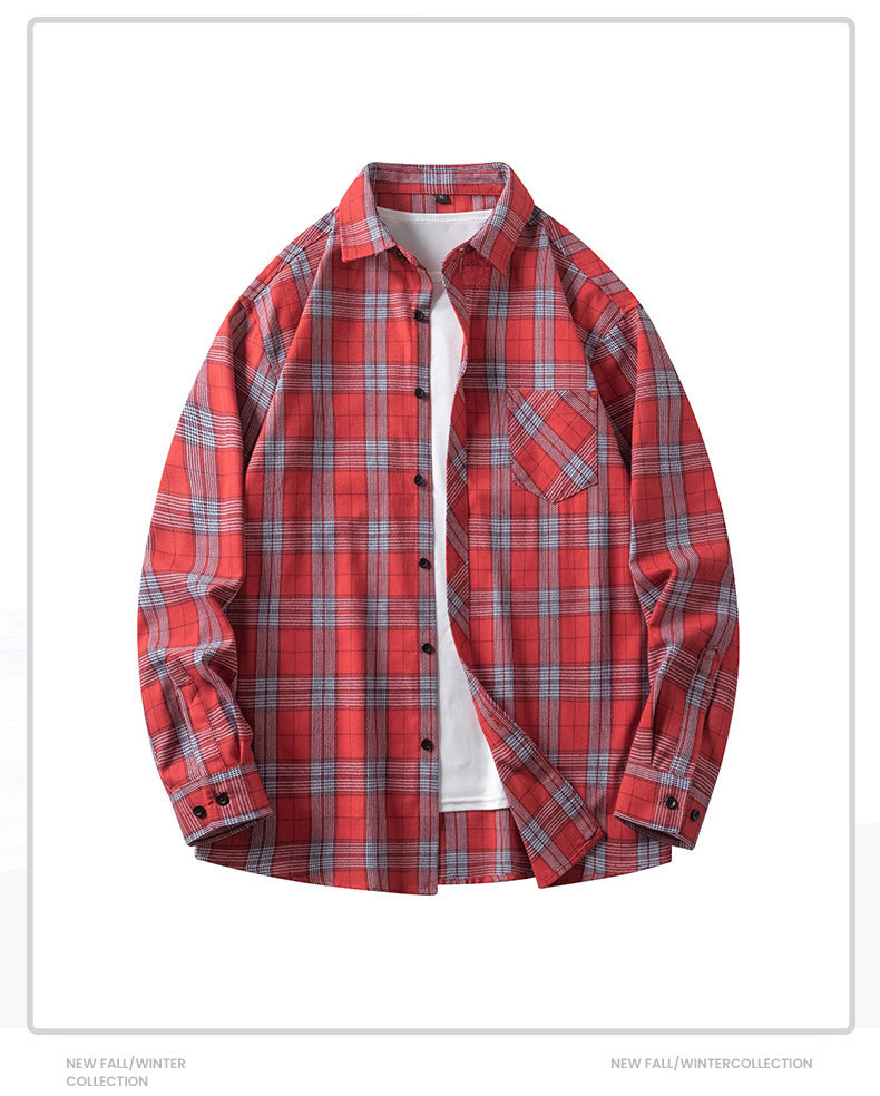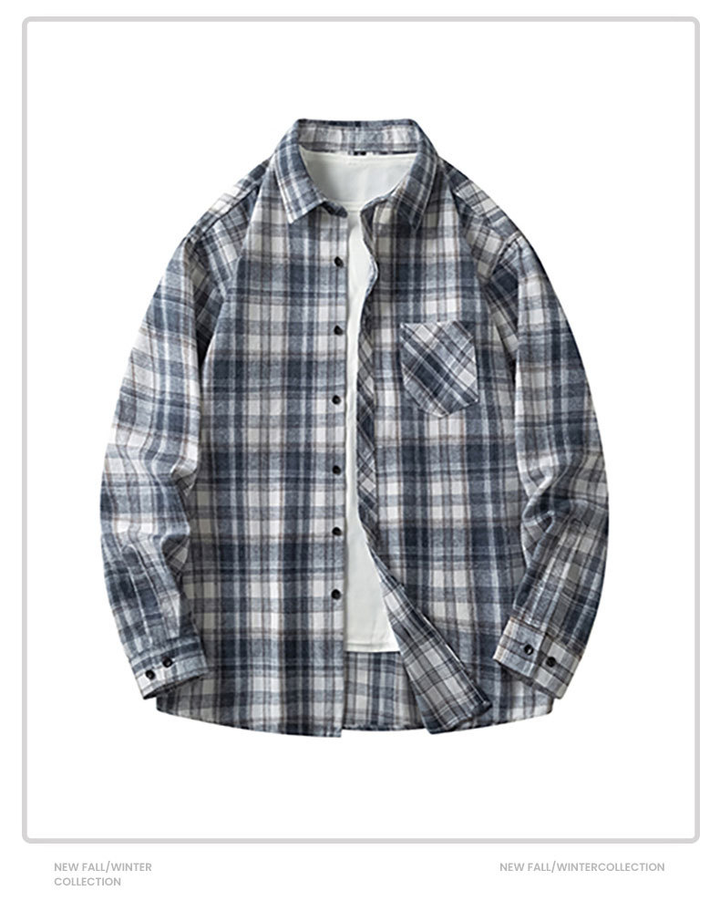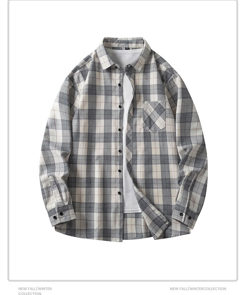 남성 체크무늬 셔츠 가을 일본 레트로 스타일 루즈핏 다용도 학생 긴팔 셔츠 남녀 공용 얇은 재킷스토어 가기