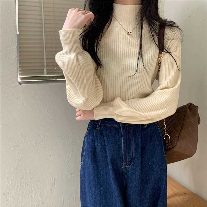 내부 하프 터틀넥 두꺼운 바닥 셔츠 블랙 스웨터 탑 가을과 겨울 슬림 핏 슬리밍 다목적 긴 소매 스웨터