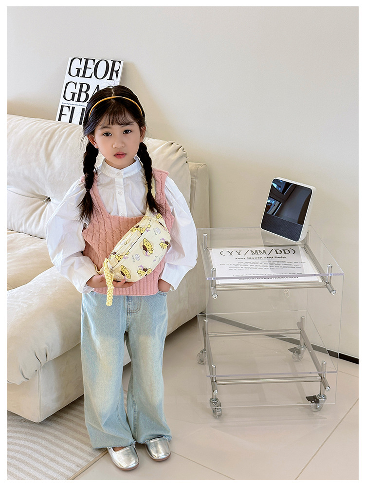 한국식 어린이 가슴 가방 만화 귀여운 메신저 가방 소년과 소녀 서양식 여행 허리 가방 유치원 아기 어깨 가방
