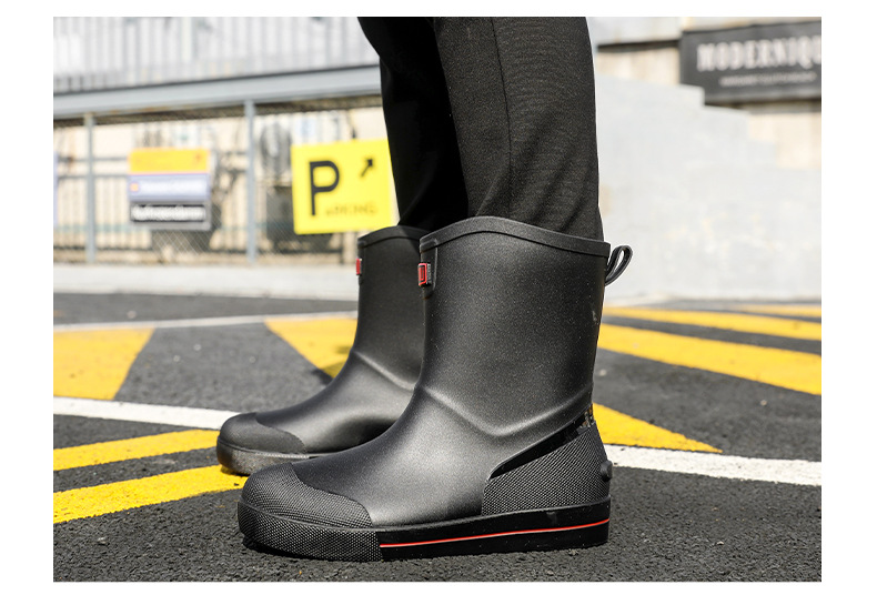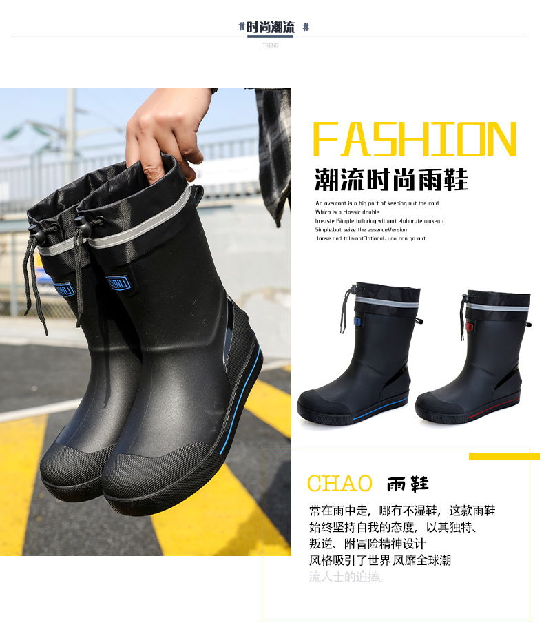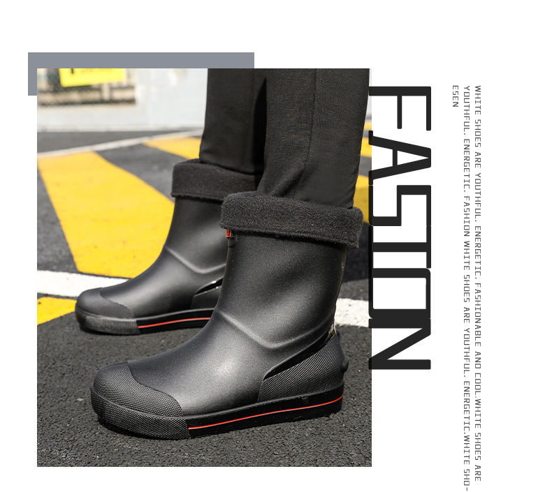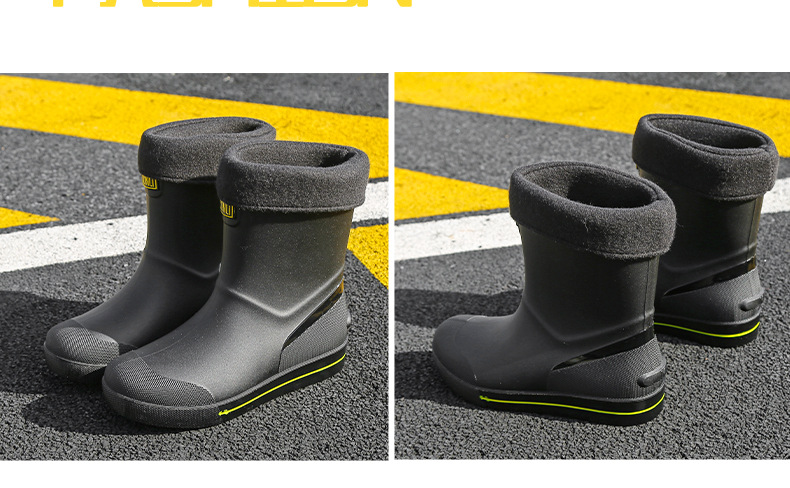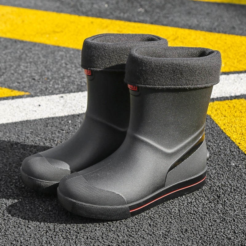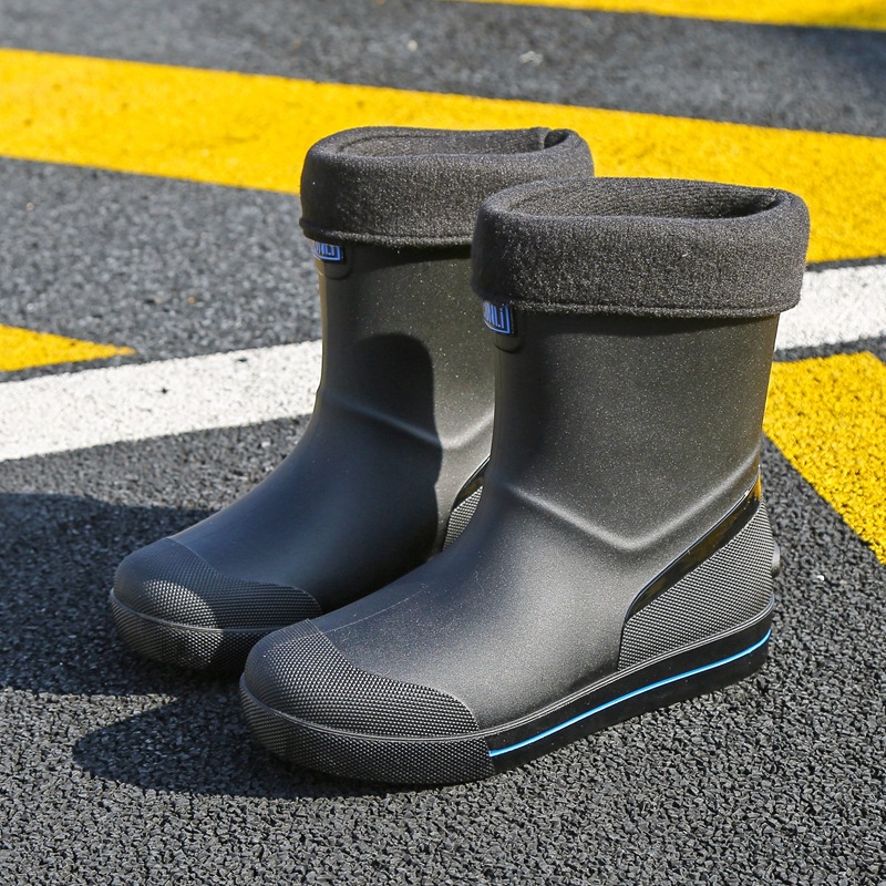 Rain Boots 남성용 새로운 drawstring 방우 방수 신발 짧은 중간 미끄럼 비 장화 벨벳 면화 신발 작업 고무 신발
