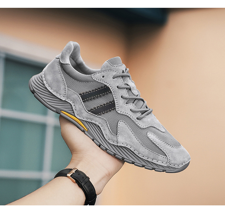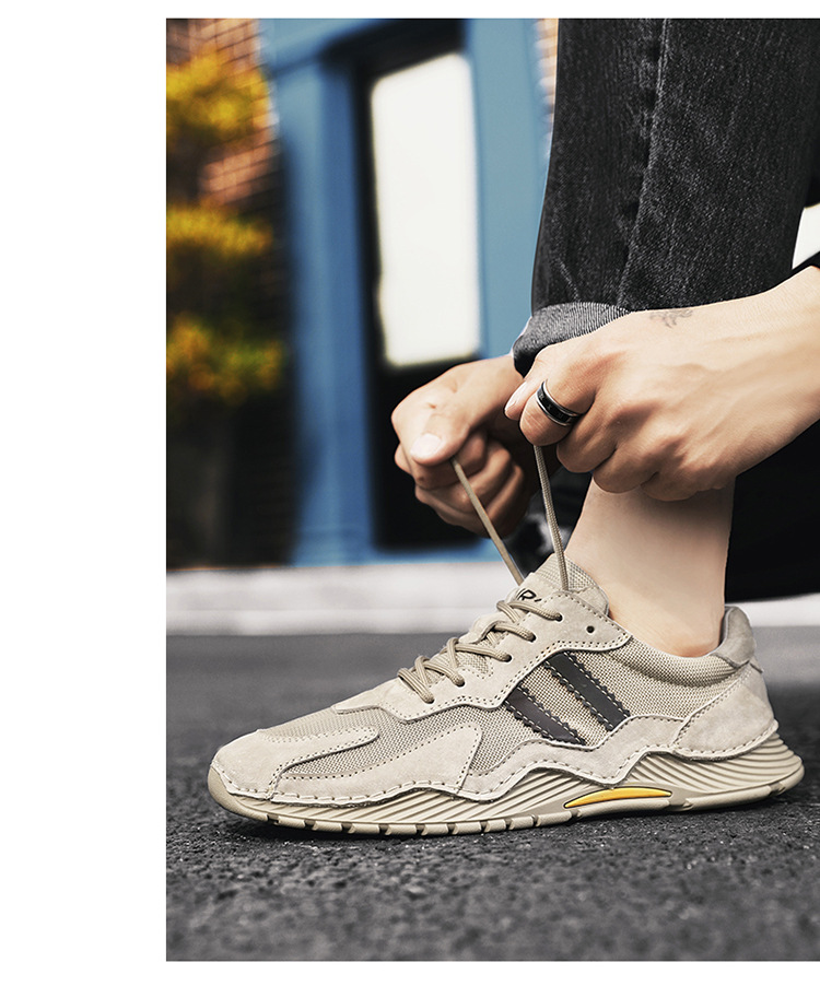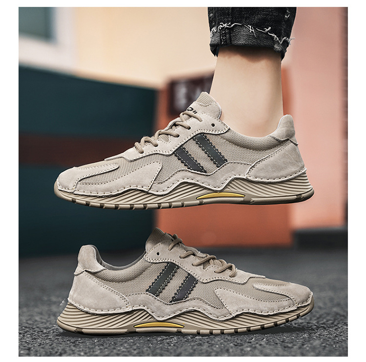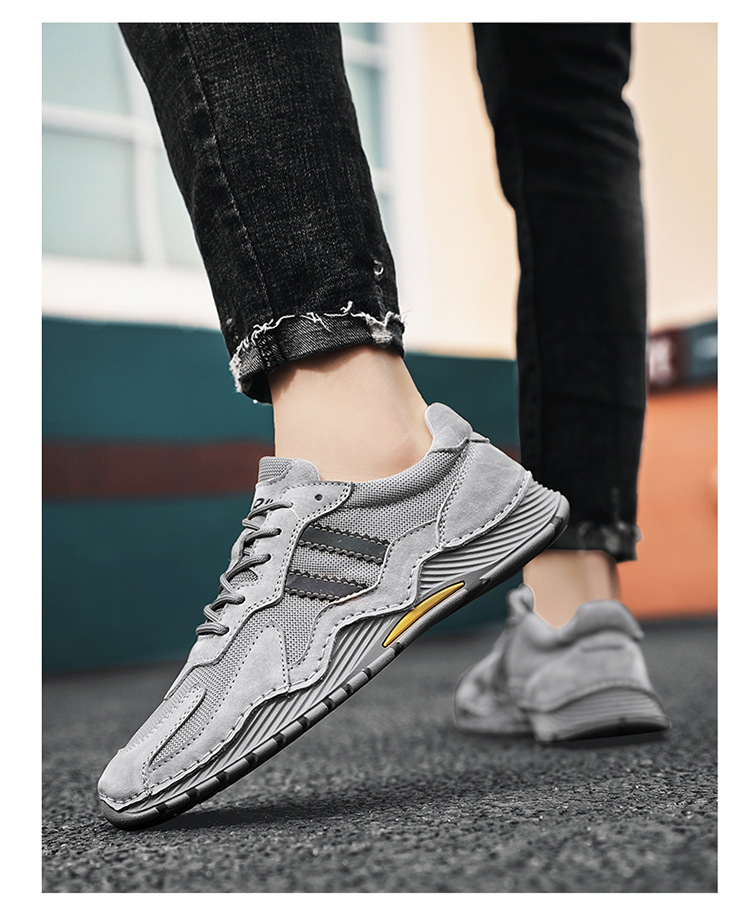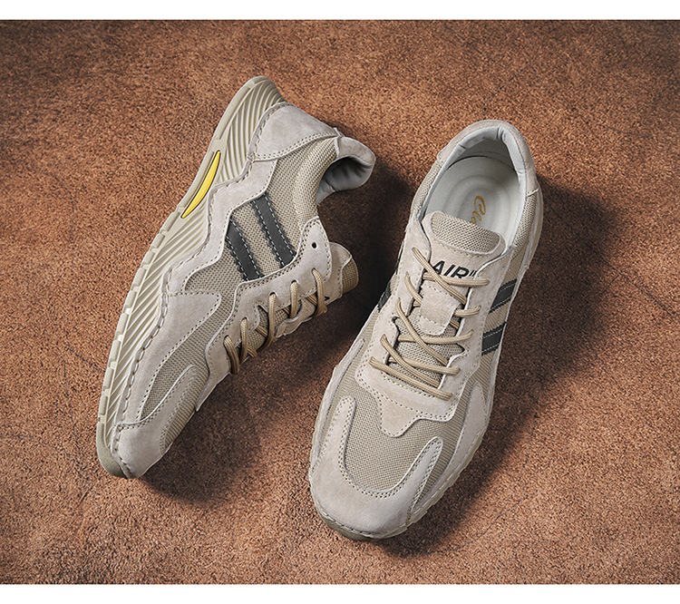 운동화 남성 2024 새로운 정품 가죽 메쉬 남성 신발 매일 여름 통기성 야외 캐주얼 조깅 신발 진강 신발