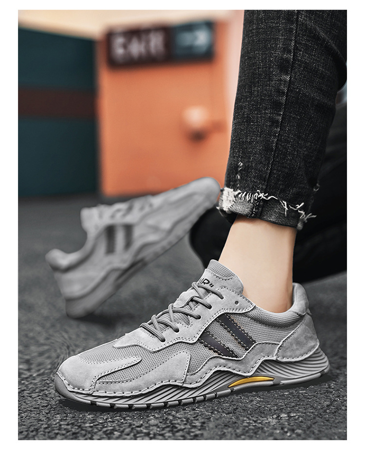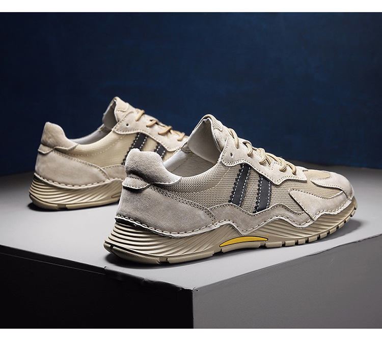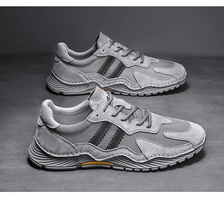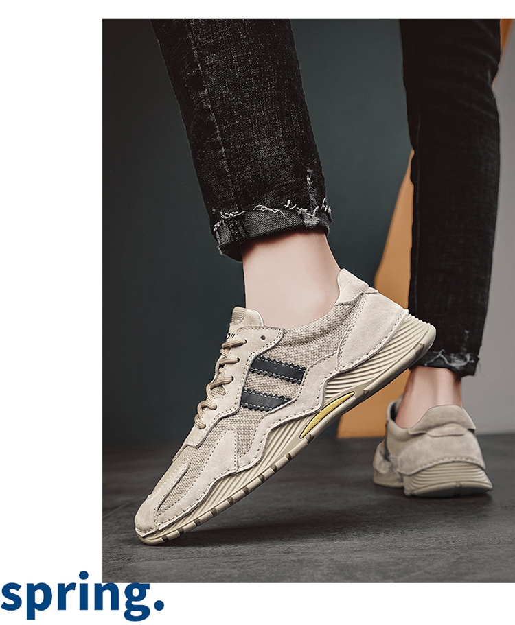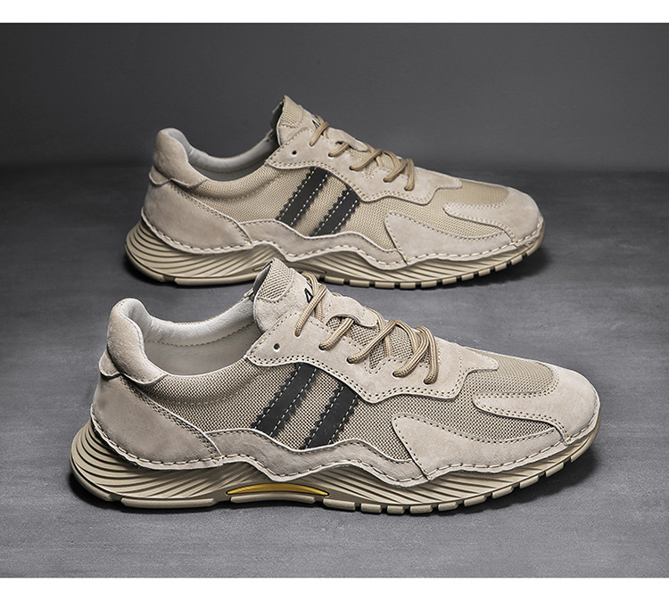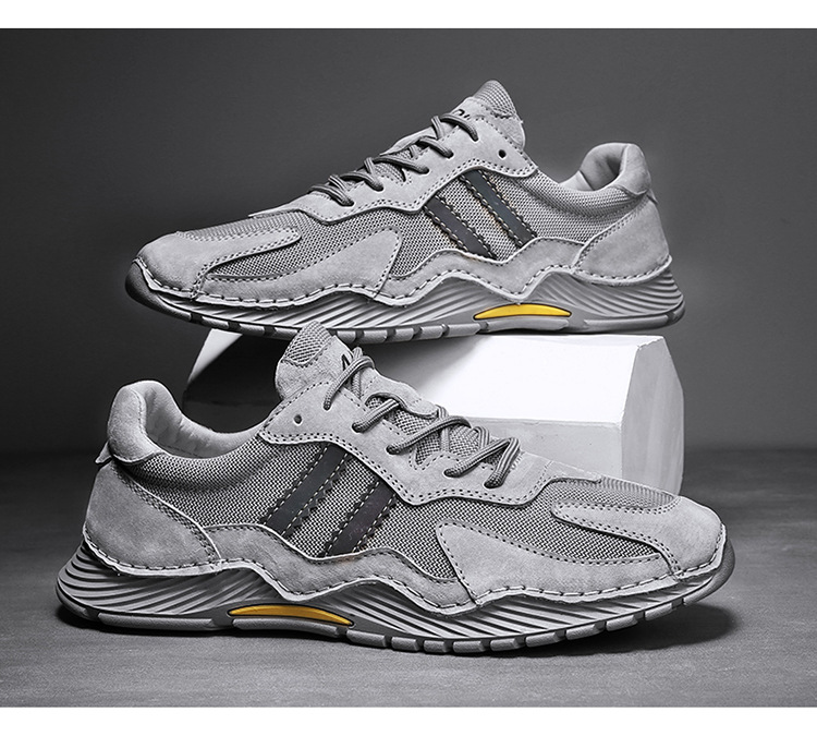운동화 남성 2024 새로운 정품 가죽 메쉬 남성 신발 매일 여름 통기성 야외 캐주얼 조깅 신발 진강 신발