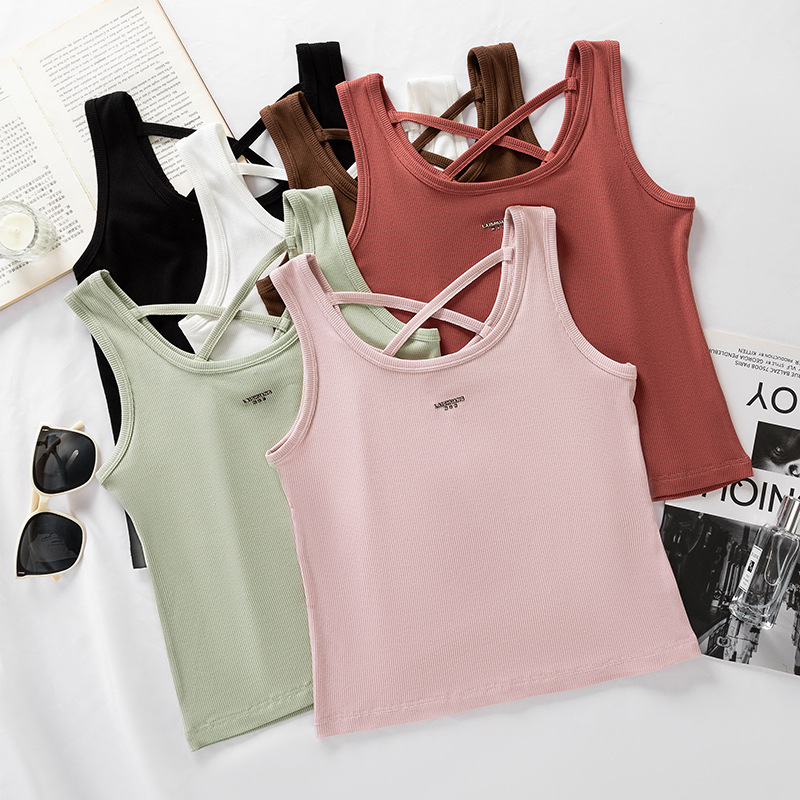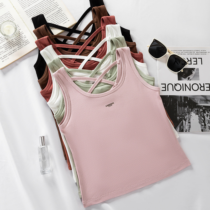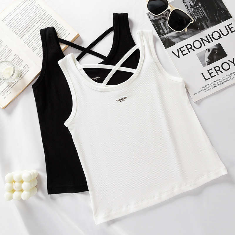 여름 새로운 올 매치 조끼 여성 겉옷 노출 방지 유방 커버 민소매 슬림 한국식 스레드 조끼 탑