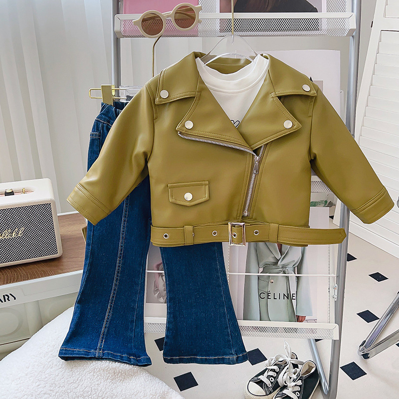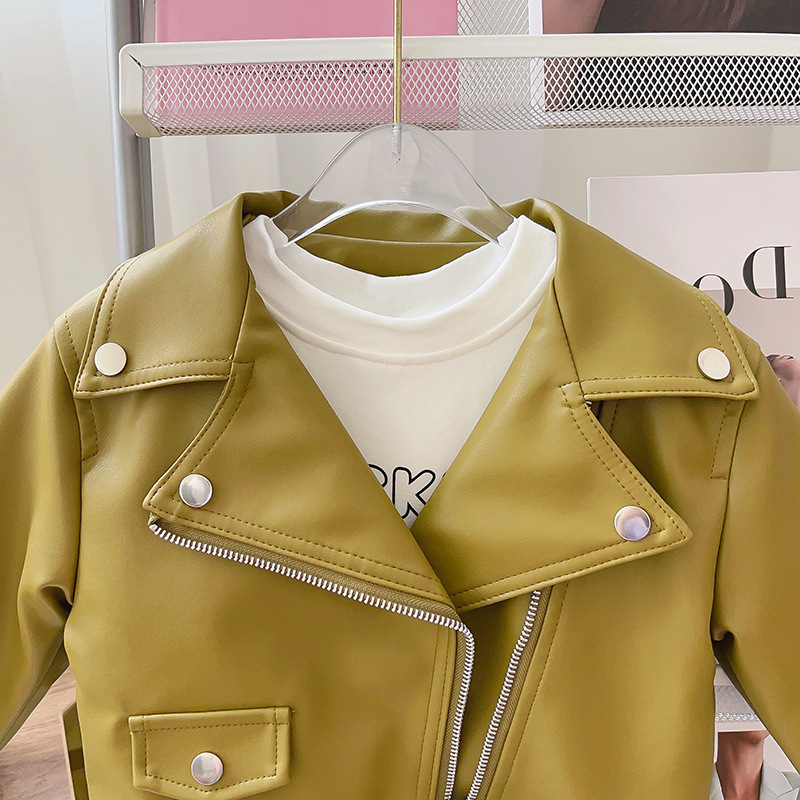 신상 아동용 코트 2025 가을 신상품 여아용 바이커 숏 가죽 자켓 남아 여아용 상의 PU 가죽 수출용스토어 가기