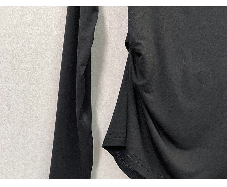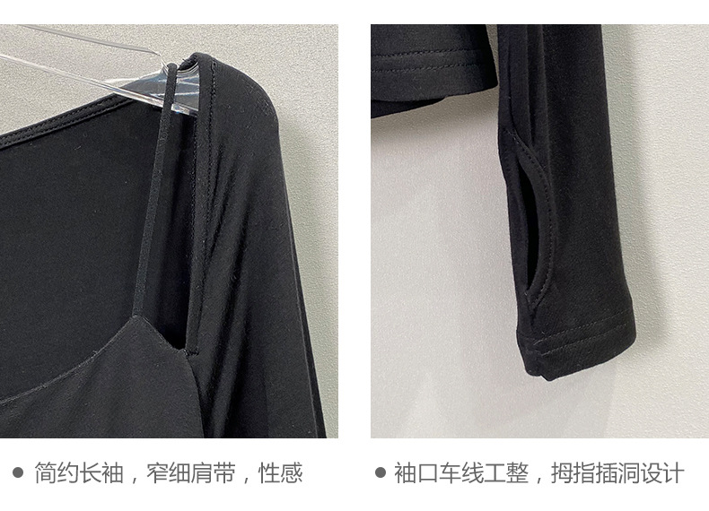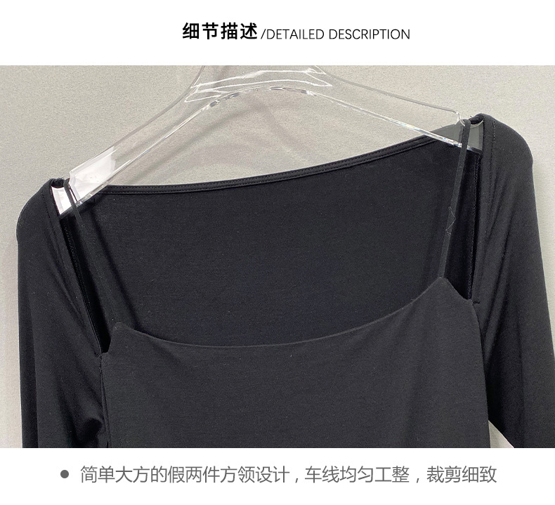 가짜 투피스 블랙 티셔츠 여성용 틈새 2024 봄과 여름 새로운 섹시한 슬림베이스 셔츠 긴 소매 스퀘어 칼라 탑스토어 가기