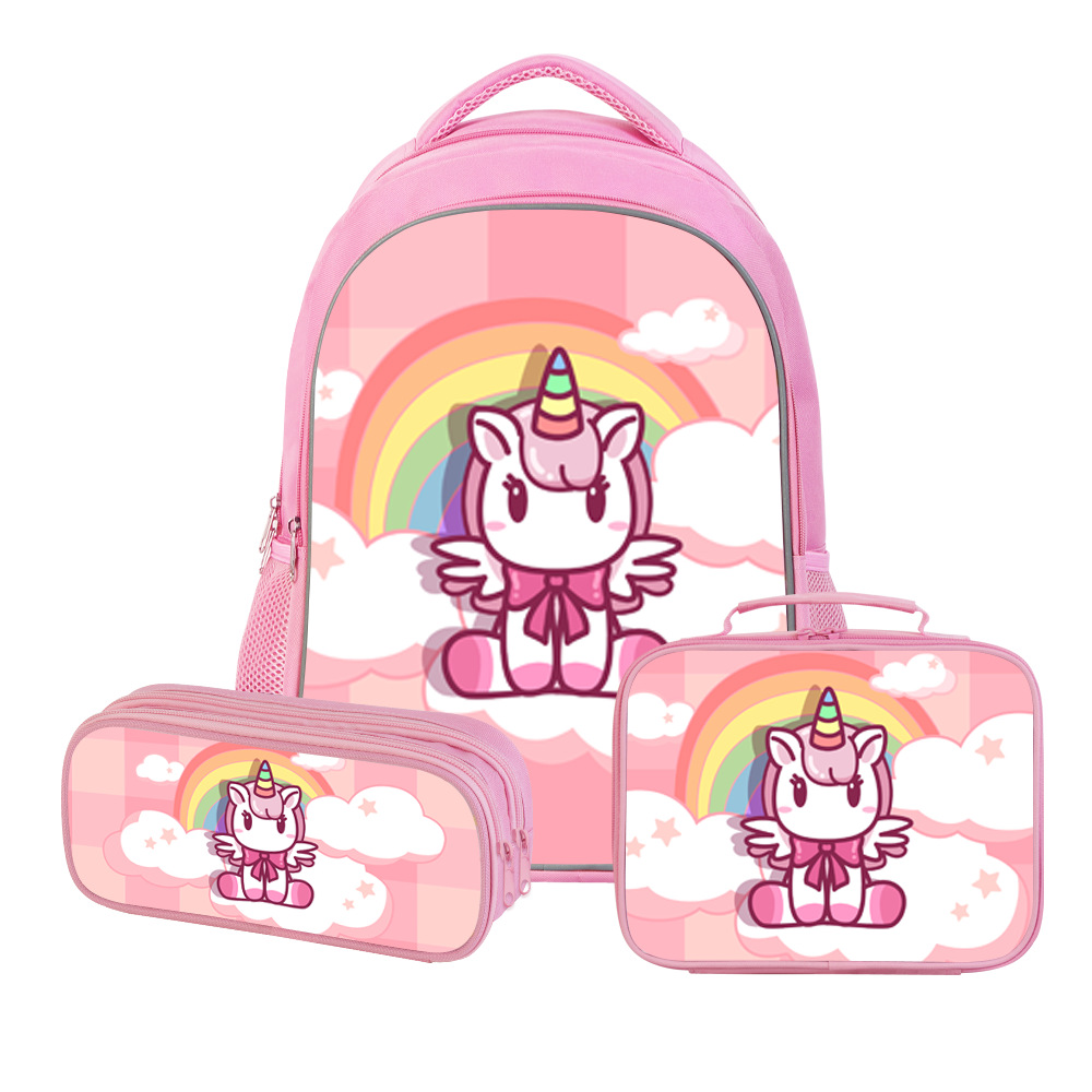 rainbow unicorn17寸书包三件套周边中小学生印花DIY图案背包厂家