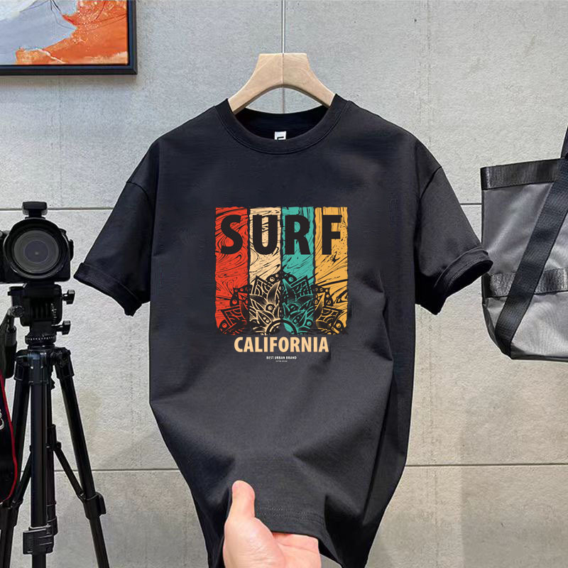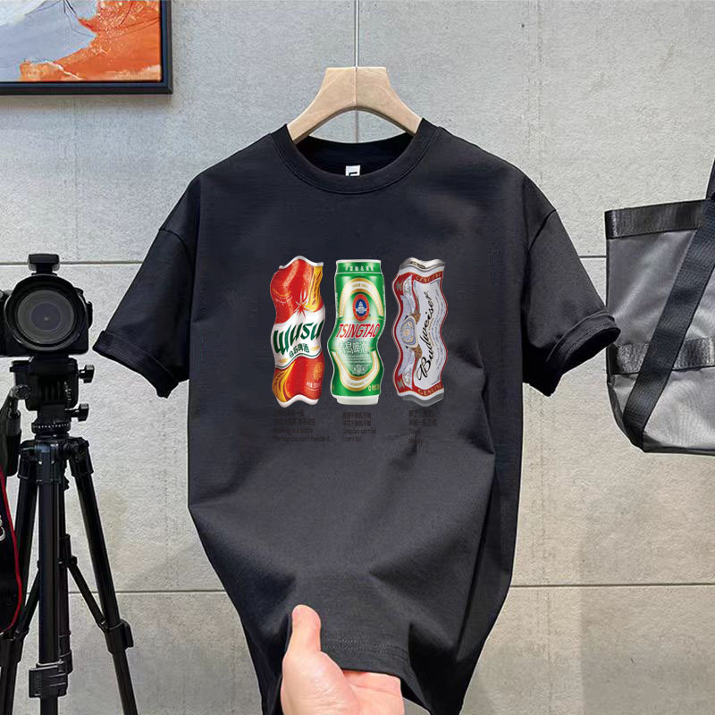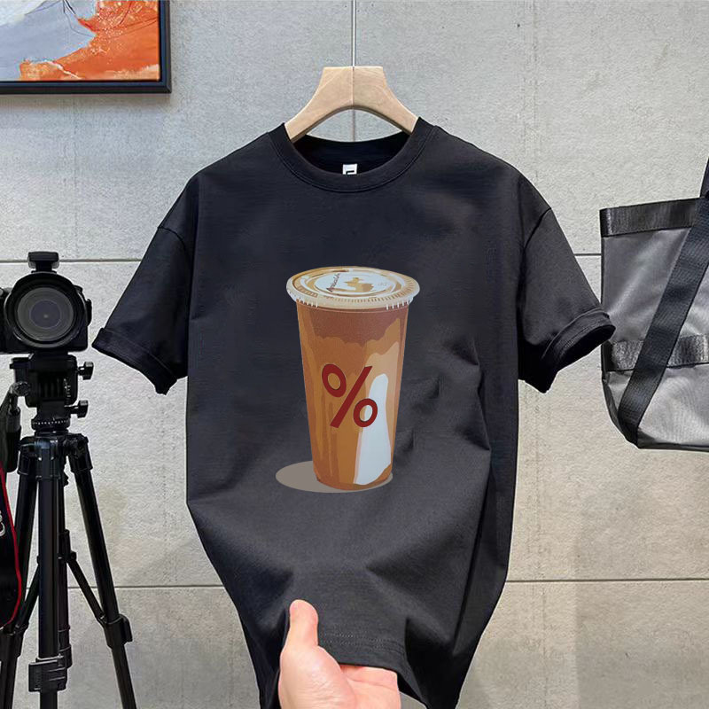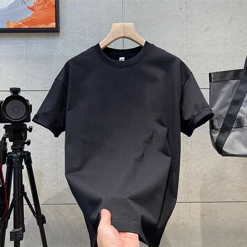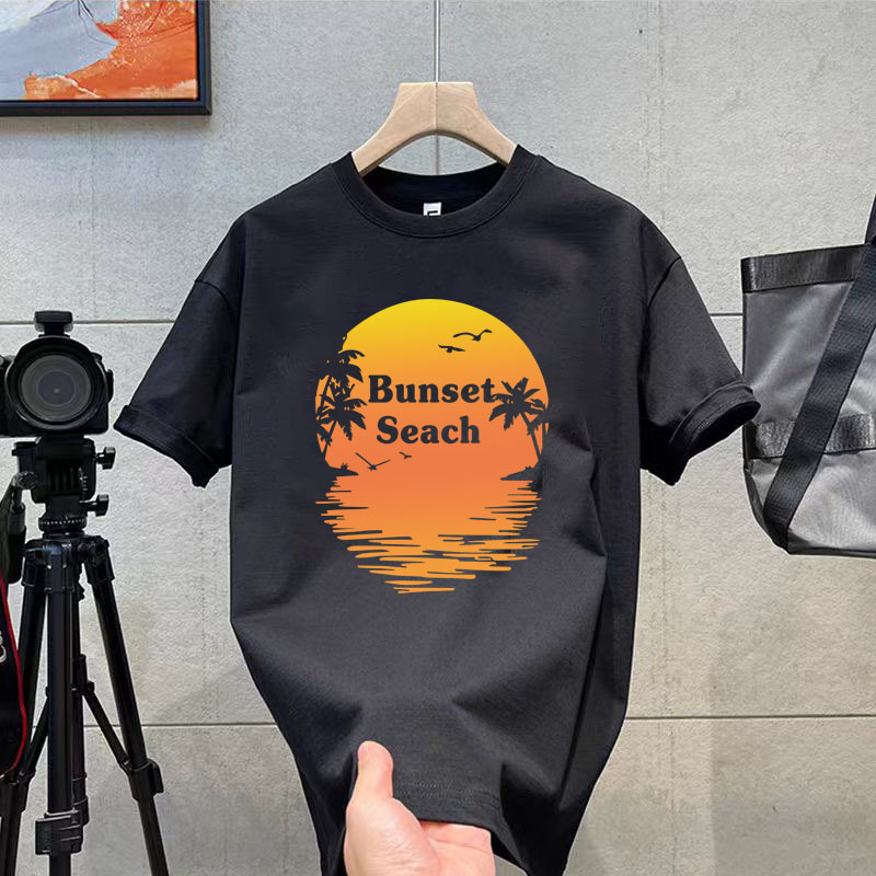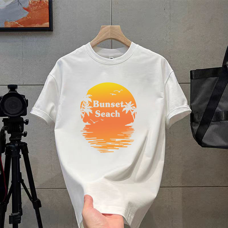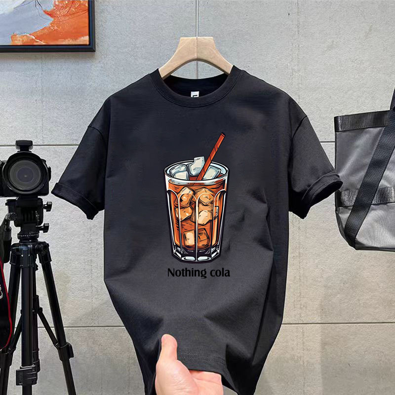 코튼 티셔츠 2024 여름 패션 브랜드 캐주얼 새로운 남성 느슨한 플러스 사이즈 둥근 목 프린트 바닥 셔츠 짧은 소매