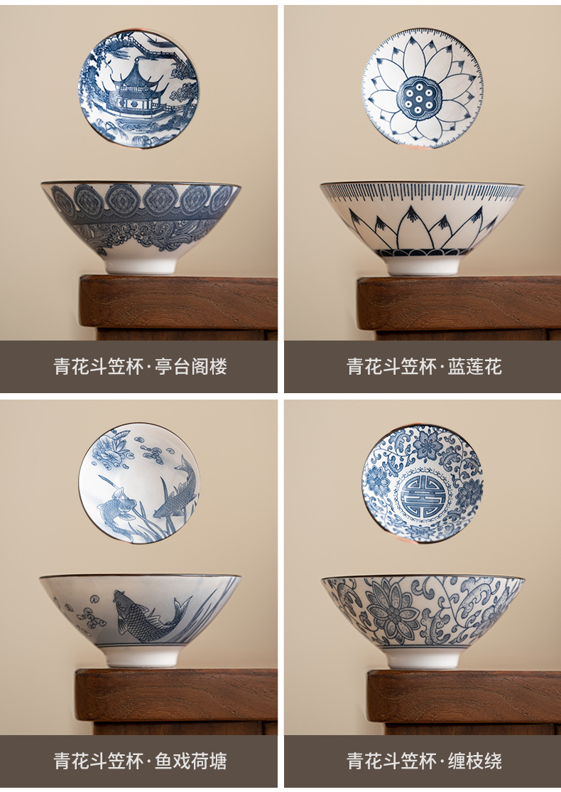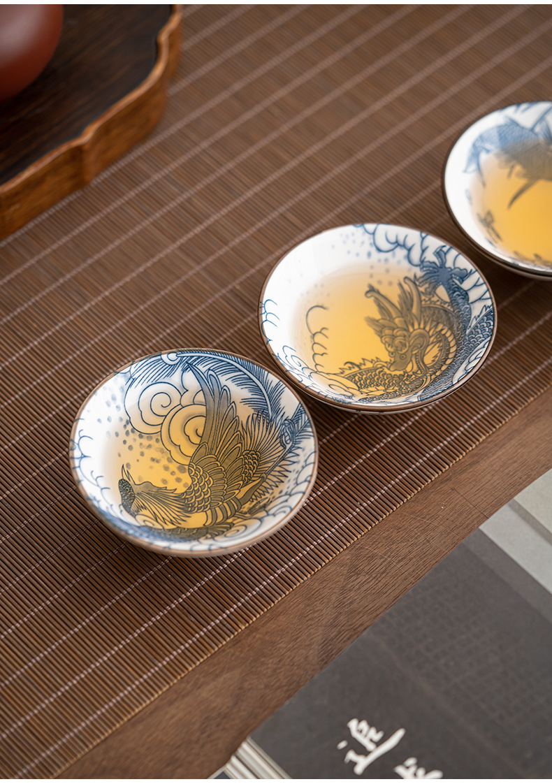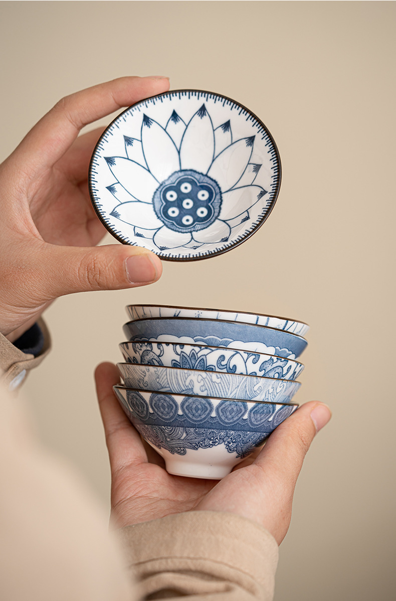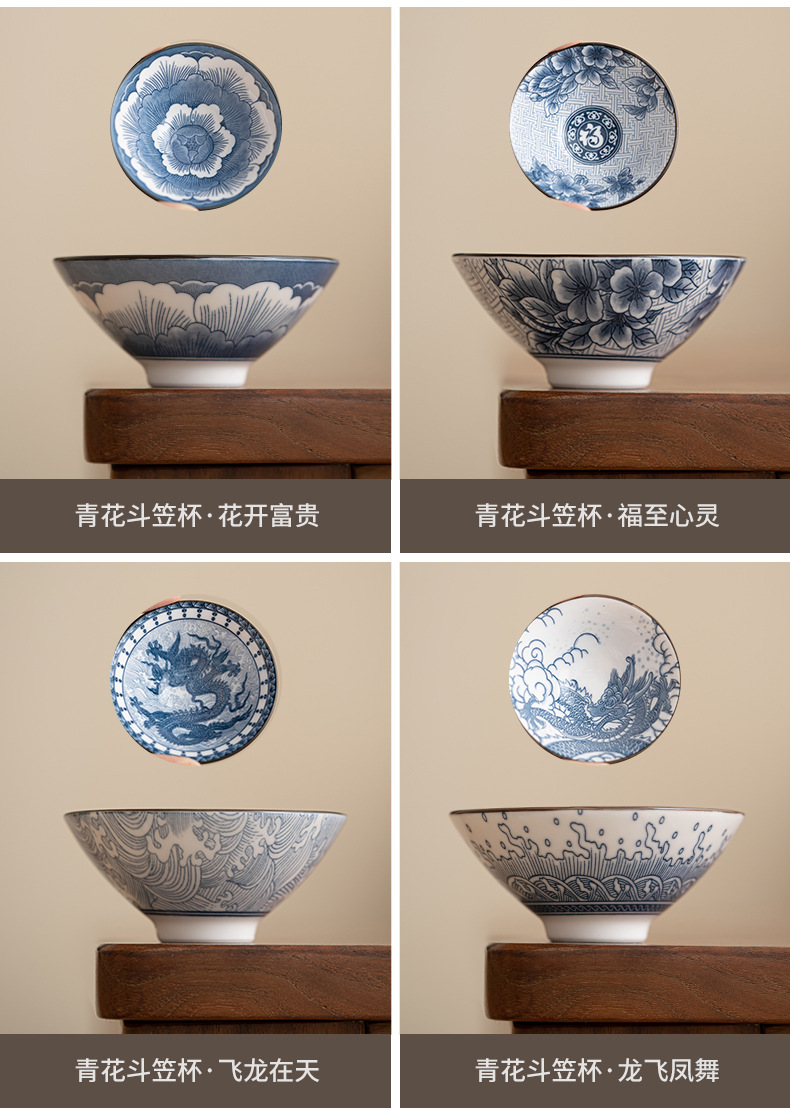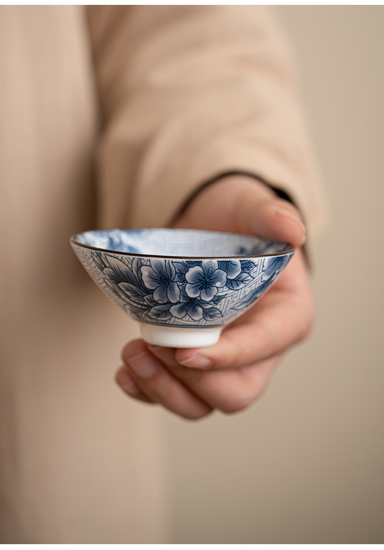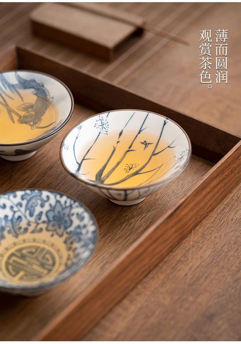 파란색과 흰색 차 컵 차 컵 차 컵 세라믹 컵 가정용 쿵푸 티 컵 마스터 컵 티 컵 싱글 작은 컵 컵 홀더 차 세트