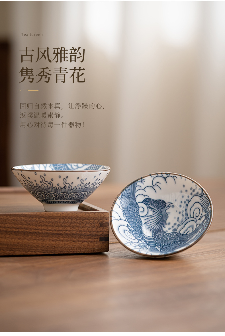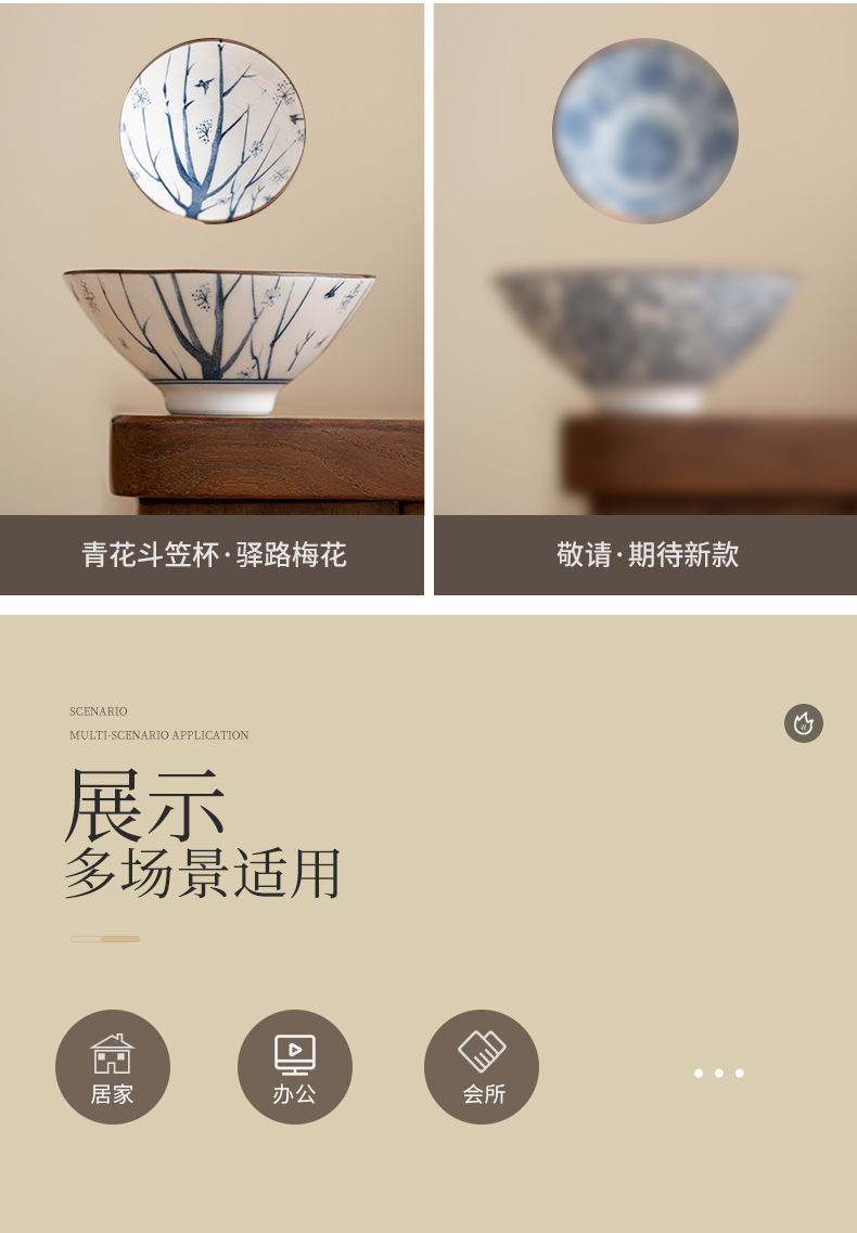 파란색과 흰색 차 컵 차 컵 차 컵 세라믹 컵 가정용 쿵푸 티 컵 마스터 컵 티 컵 싱글 작은 컵 컵 홀더 차 세트스토어 가기