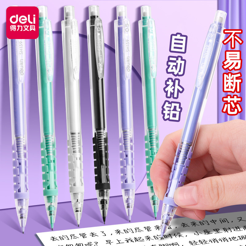 Deli SH139 자동 연필 초등학교 학생들은 자동 펜을 사용하여 남학생과 여학생을위한 그립 0.5 리드를 수정합니다.스토어 가기