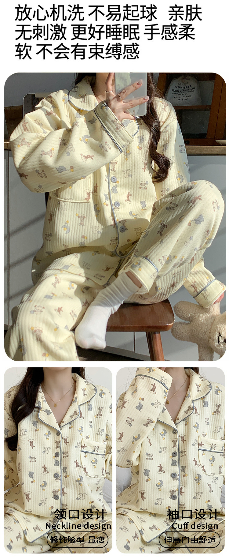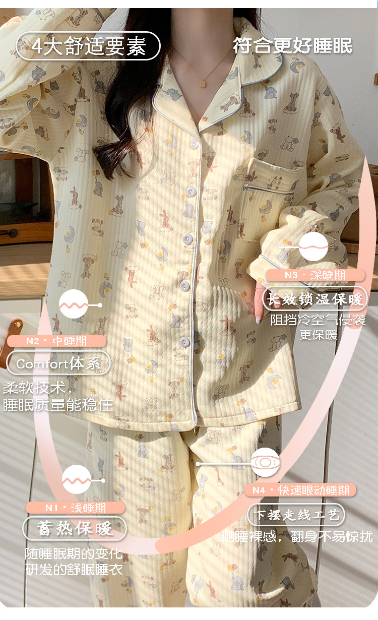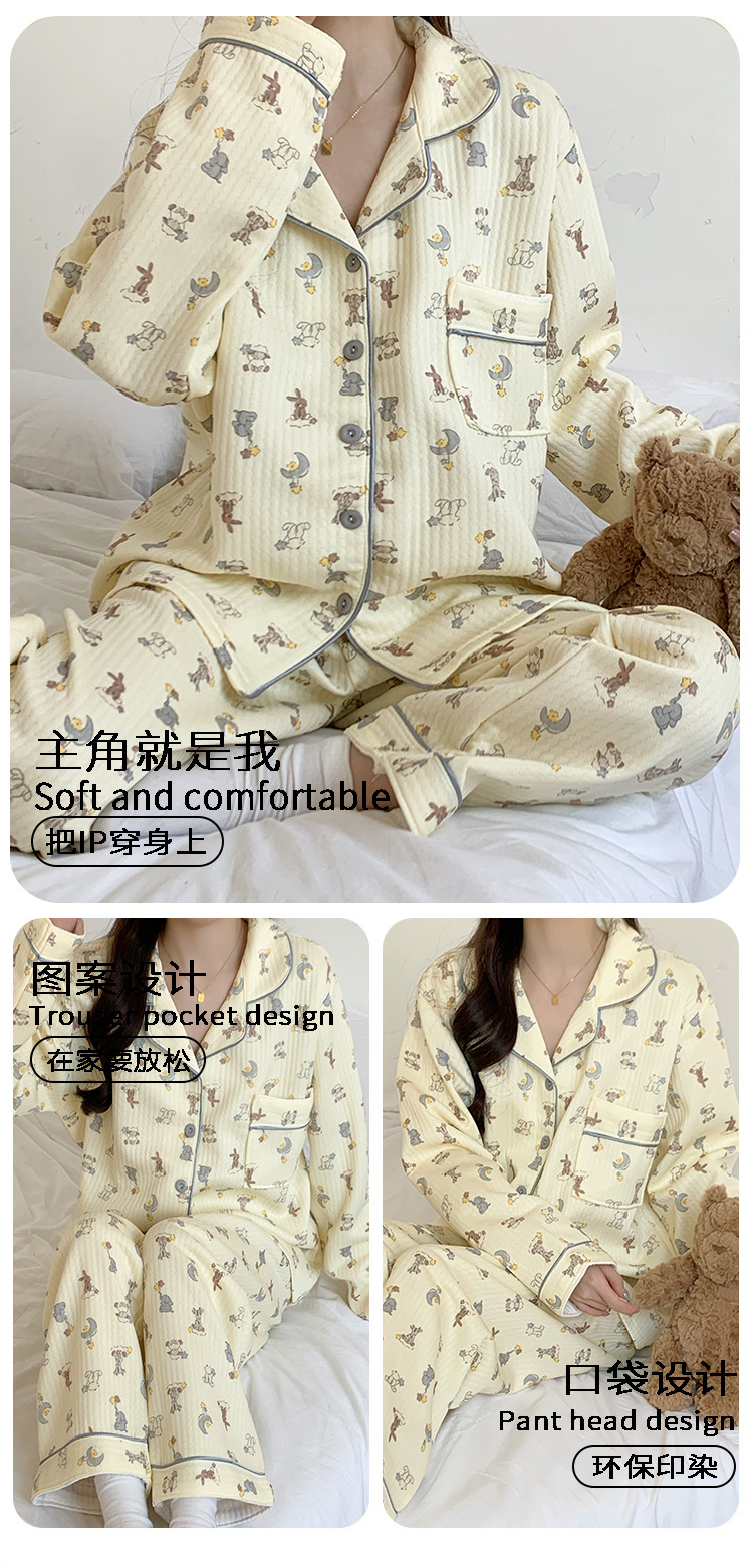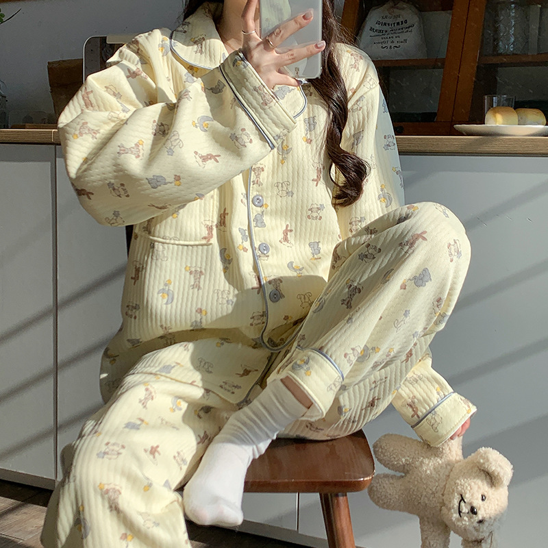 두꺼운 커플 잠옷 가을과 겨울 귀여운 만화 긴팔 바지 세트 남녀 한국식 학생 홈웨어스토어 가기