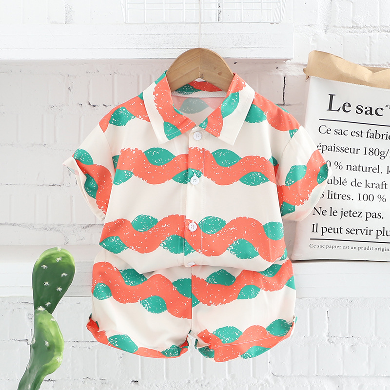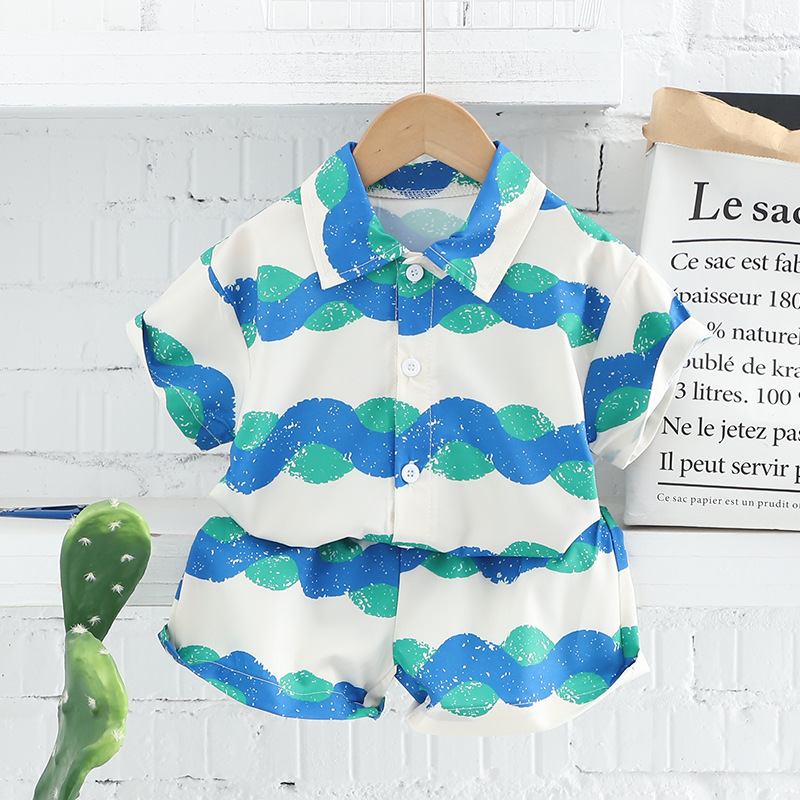 국경 간 아동복 여름 새 소년 유아 어린이 세트 전체 인쇄 셔츠 비치 시리즈 투피스 세트 패션스토어 가기