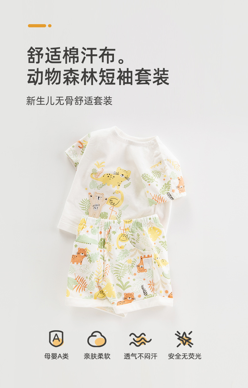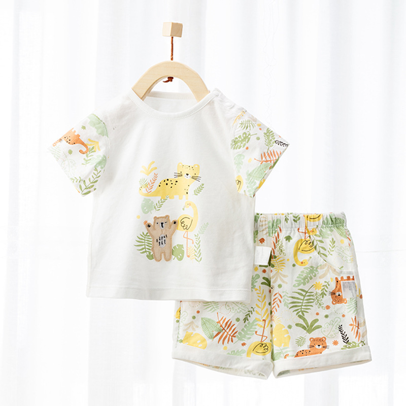 유아용 얇은 순면 반팔 세트, 남녀 아기 외출복, 투피스 여름옷, 분리형 의류, 캐주얼 아동복스토어 가기