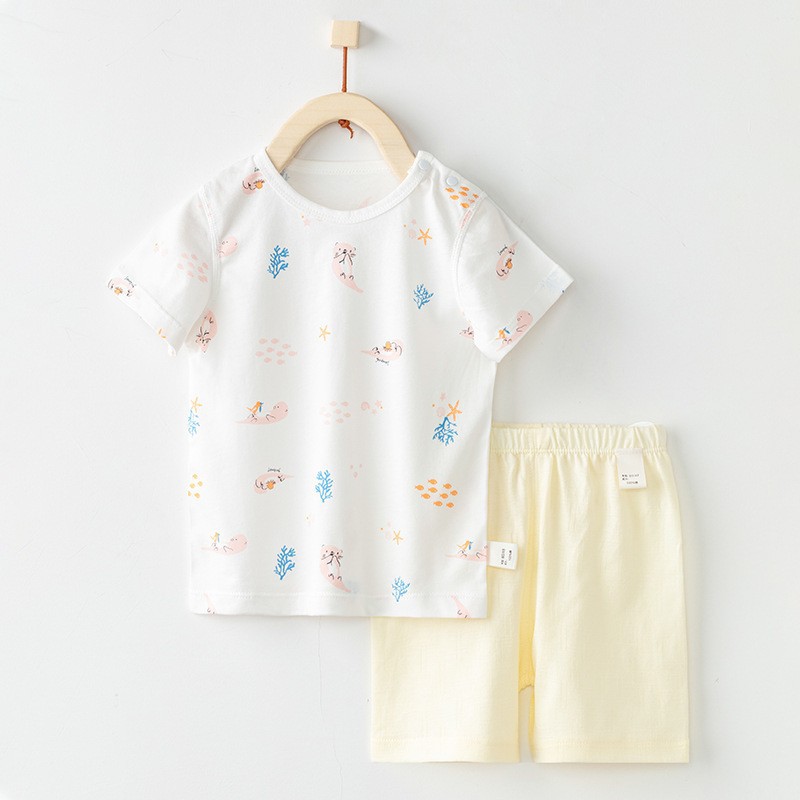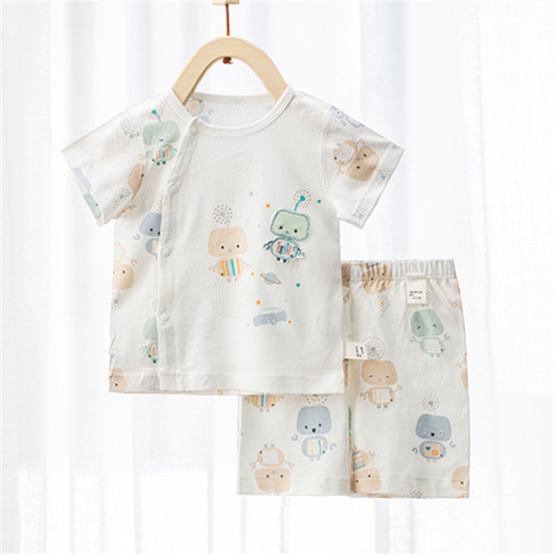 유아용 얇은 순면 반팔 세트, 남녀 아기 외출복, 투피스 여름옷, 분리형 의류, 캐주얼 아동복