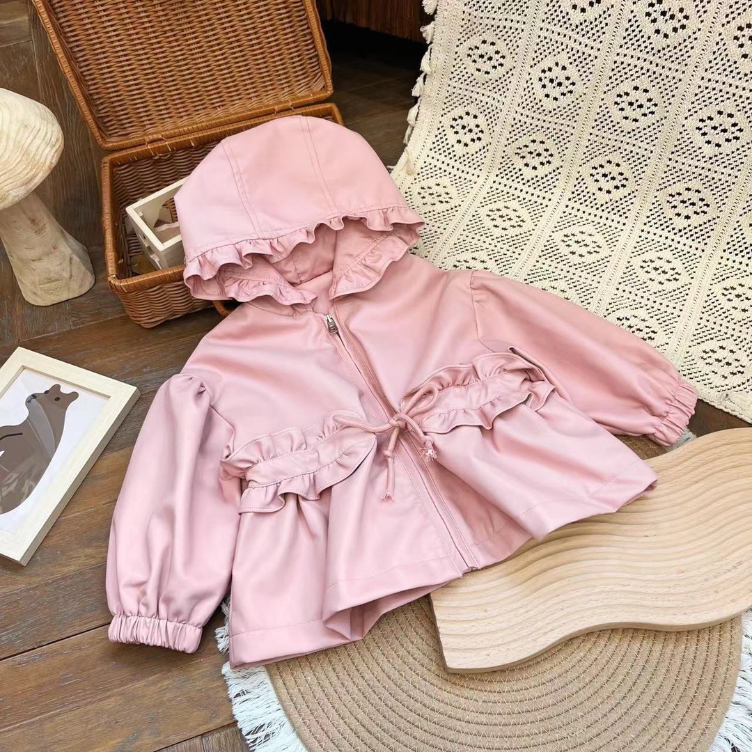 어린이 코트 2024 봄 한국 스타일 코트 새로운 어린이 소녀 후드 베이비 가죽 코트 도매스토어 가기
