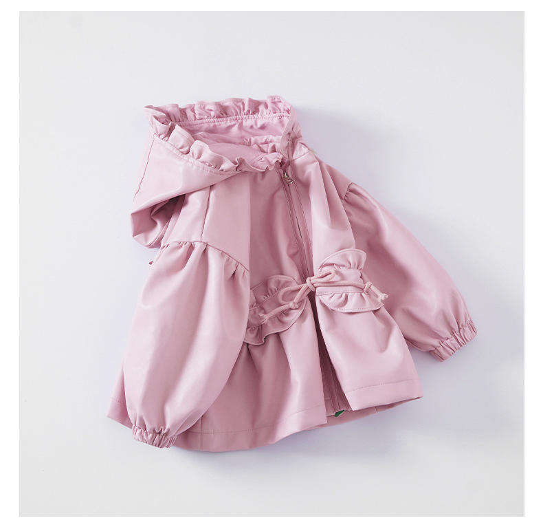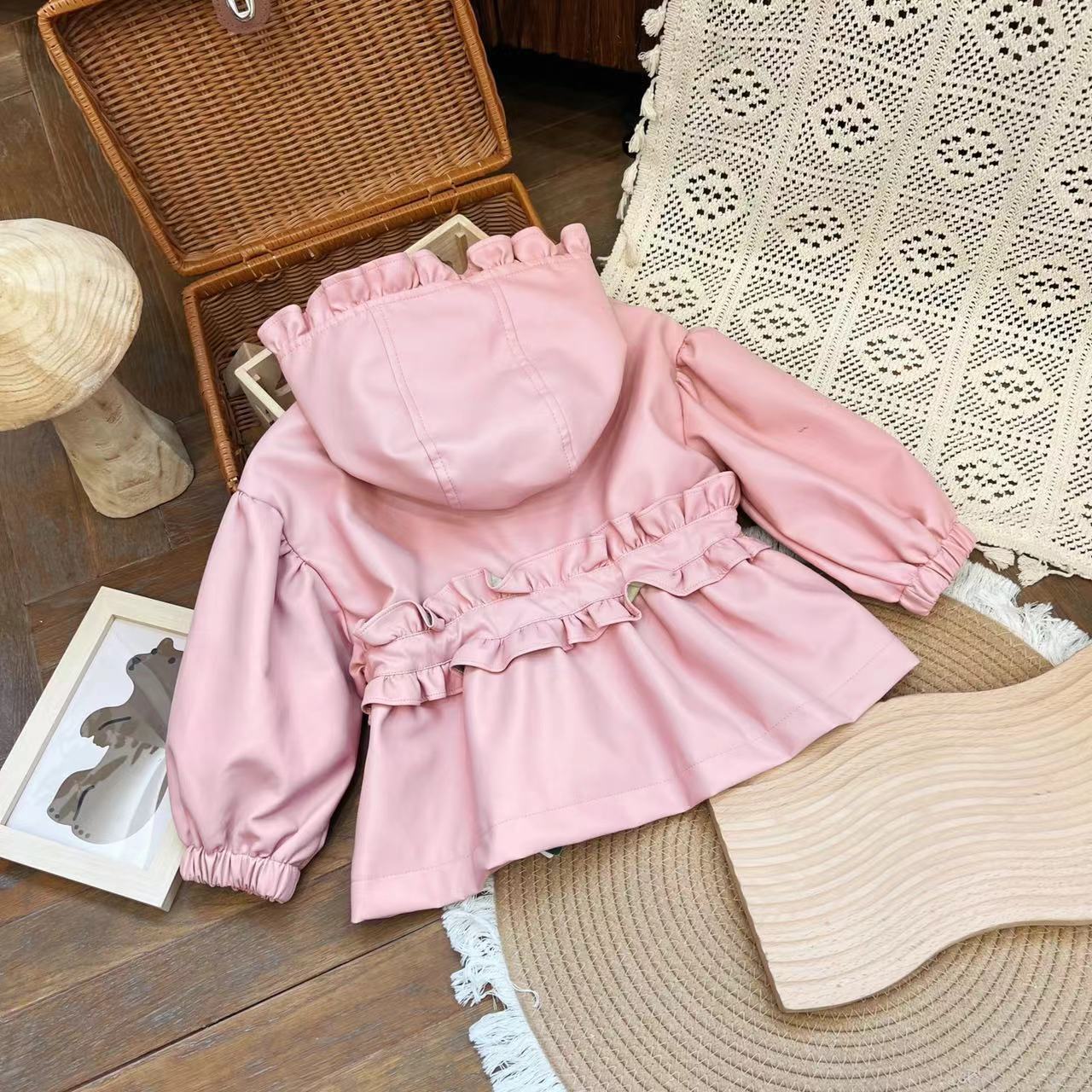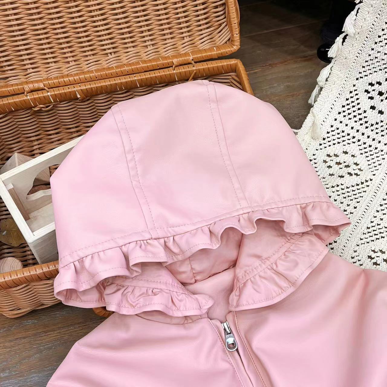 어린이 코트 2024 봄 한국 스타일 코트 새로운 어린이 소녀 후드 베이비 가죽 코트 도매
