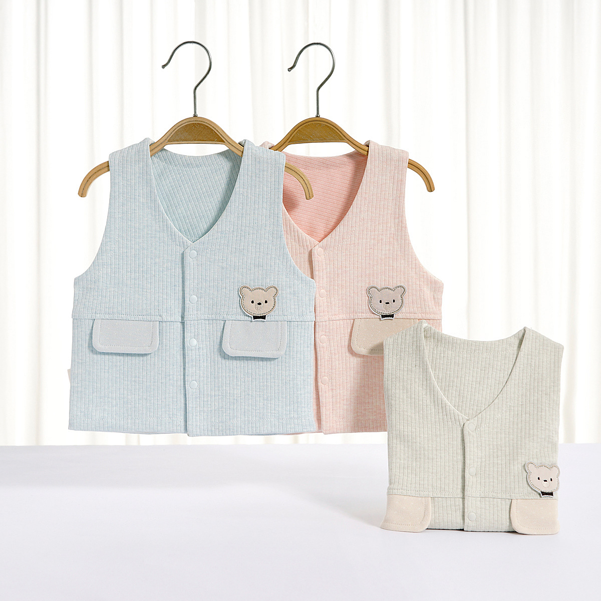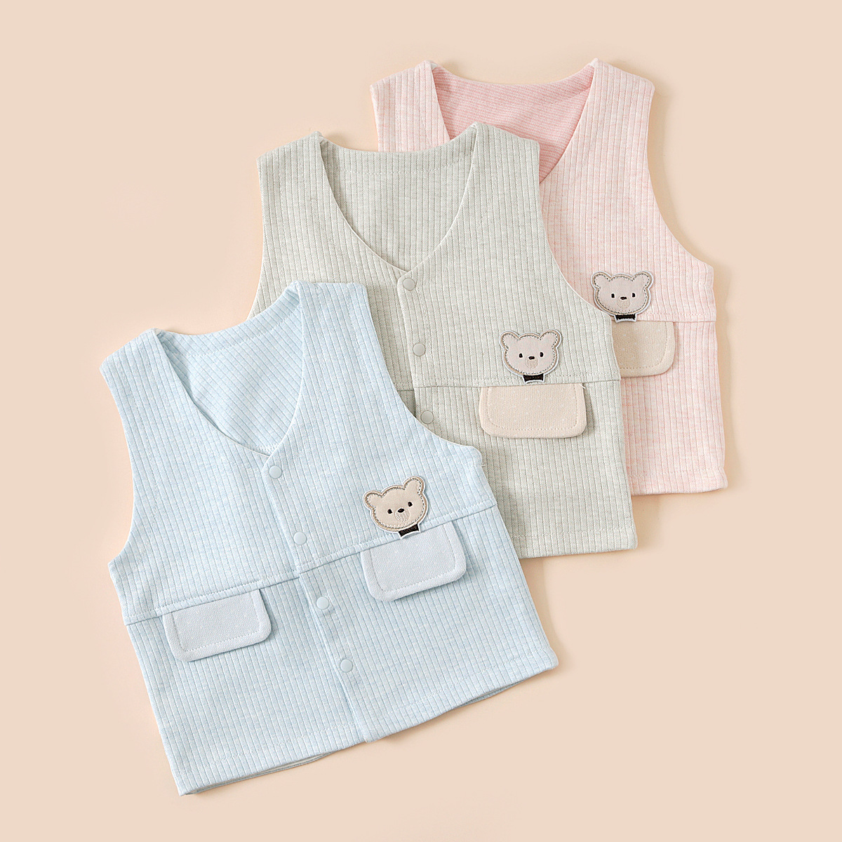 신생아 소년 소녀 아기 조끼 봄과 가을 곰 주머니 슈 벨벳 코튼 더블 레이어 조끼 따뜻한 코트스토어 가기
