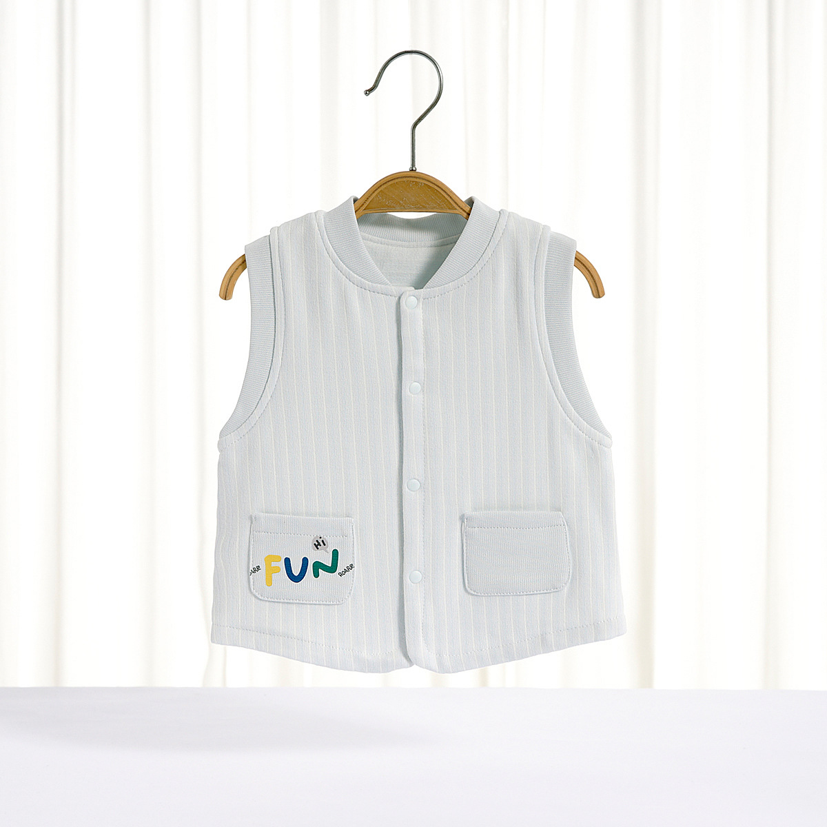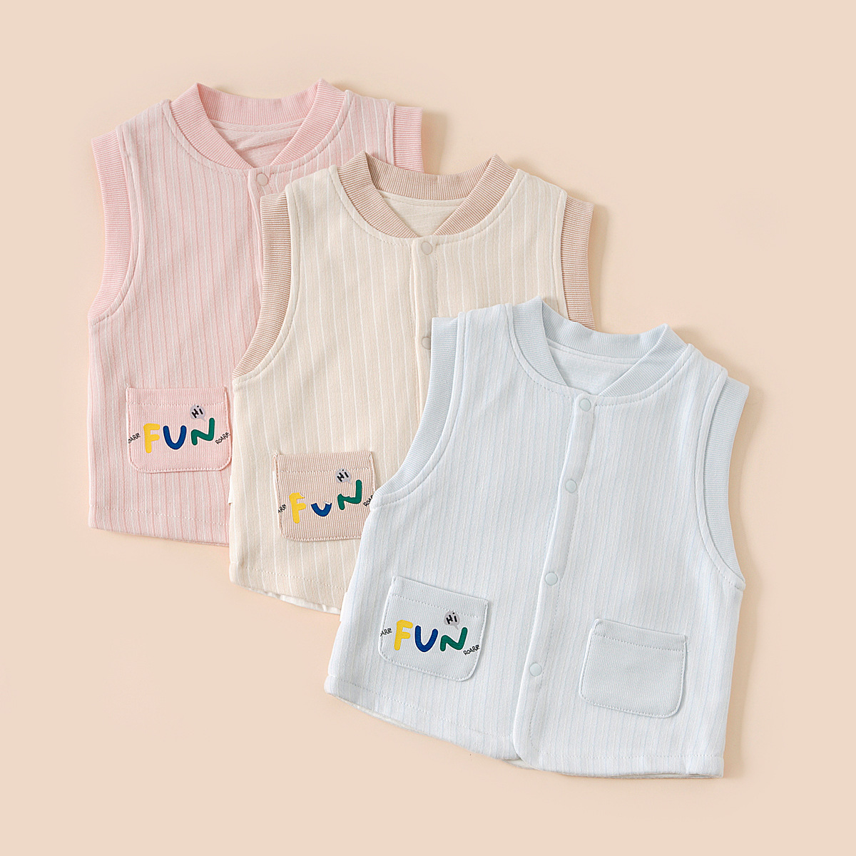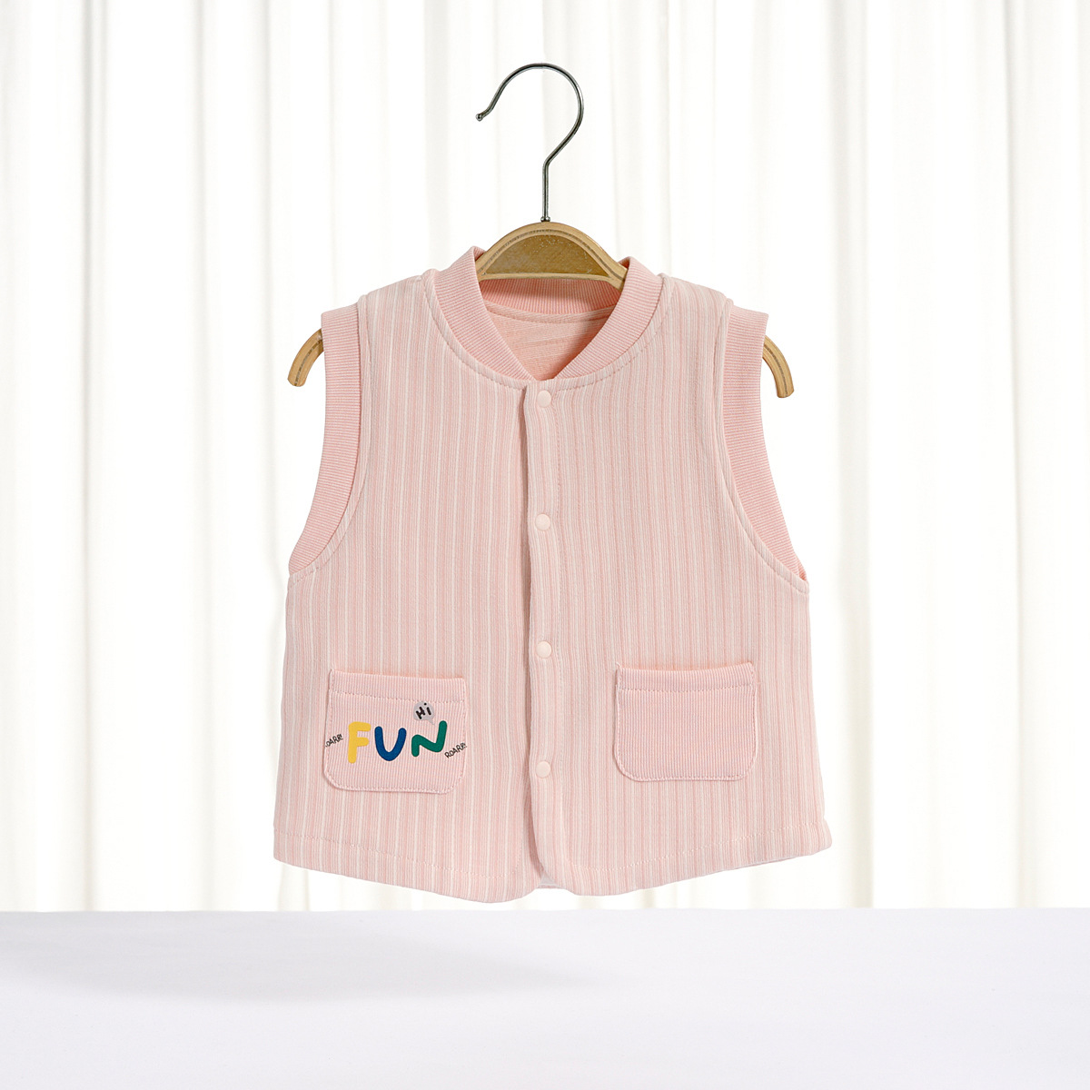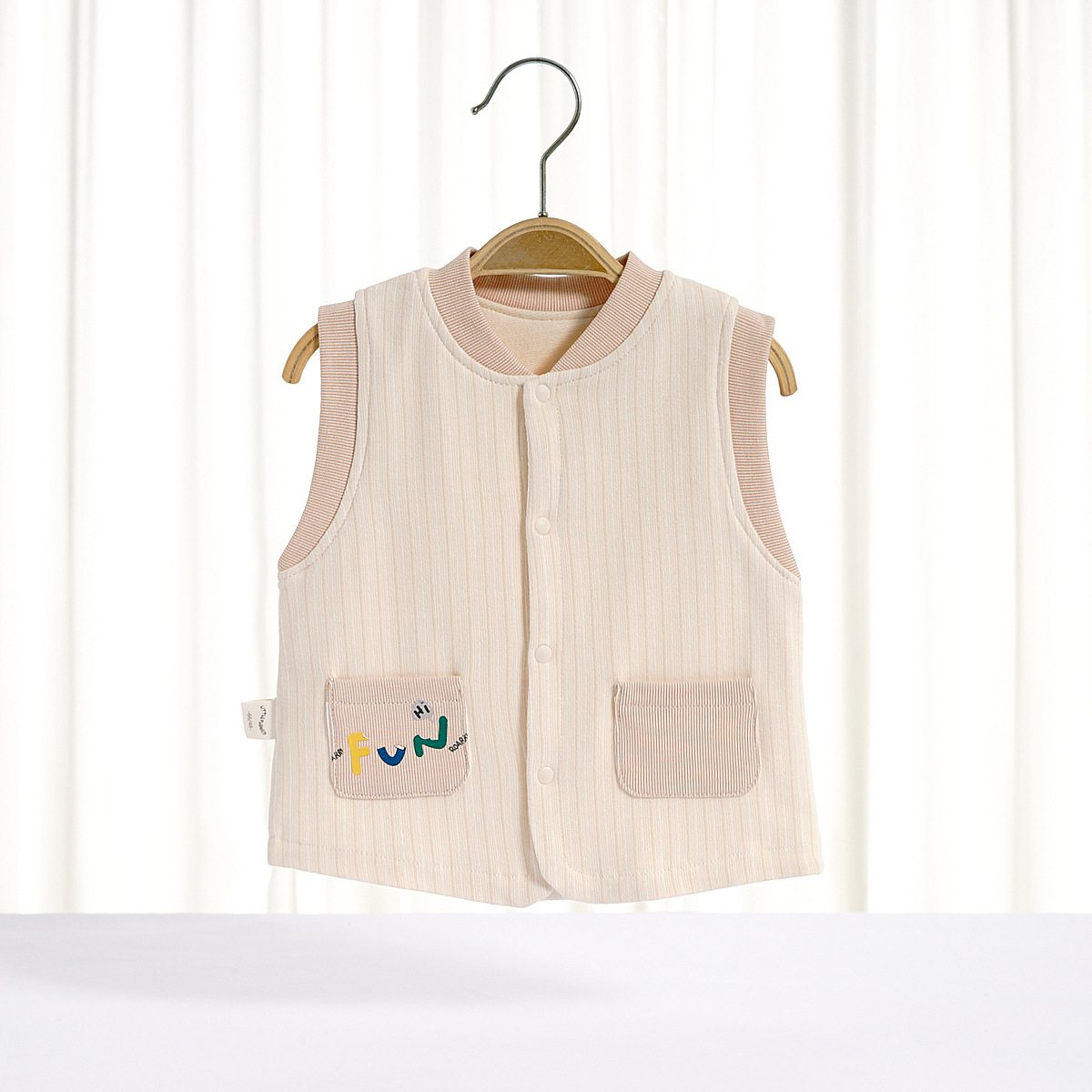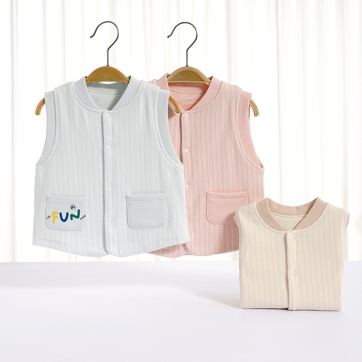 신생아 남성과 여성 아기 조끼 봄과 가을 더블 레이어 수직 스트라이프 작은 포켓 편안한 벨벳면 따뜻한 코트