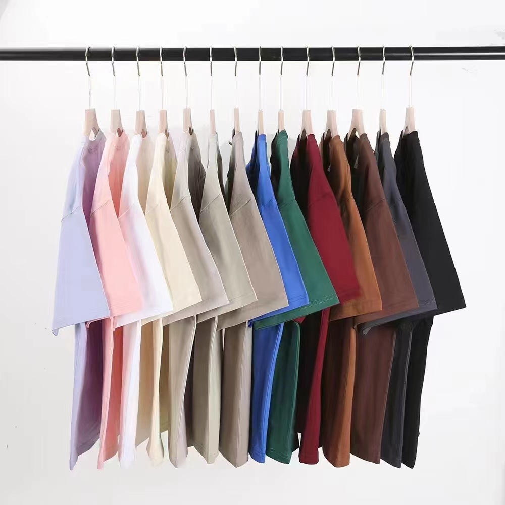 220g 티셔츠 긴 스테이플 코튼 대형 드롭 숄더 티셔츠 패션 브랜드 주문 도매 무거운 신장 긴 스테이플 코튼 라운드 넥 여름스토어 가기