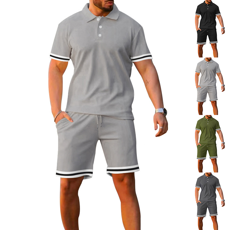 2024 테마 아마존 국경 여름 유럽과 미국의 옷깃 반팔 반바지 투피스 스포츠 및 레저 남성 세트