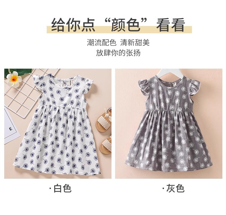 소녀의 여름 민소매 원피스 여름 새 아동복 소녀 민들레 프린트 둥근 목 조끼 원피스 아동복스토어 가기