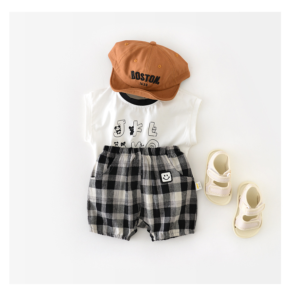 아기 큰 pp 바지 여름 얇은 아기 흑백 격자 무늬 반바지 소년 소녀 겉옷 캐주얼 바지 어린이 반바지스토어 가기
