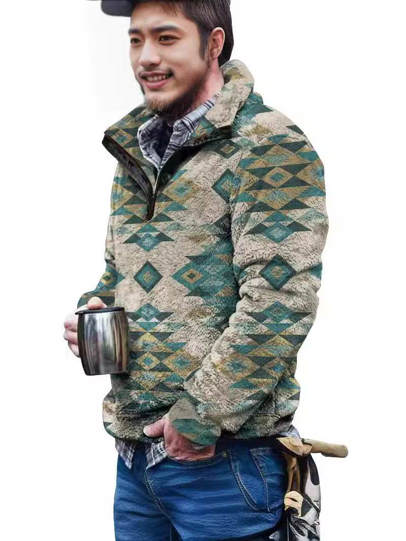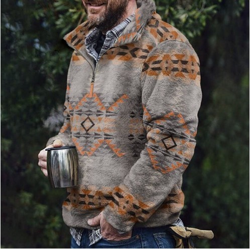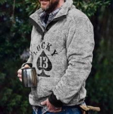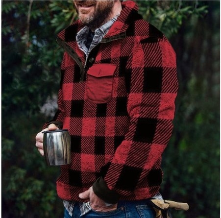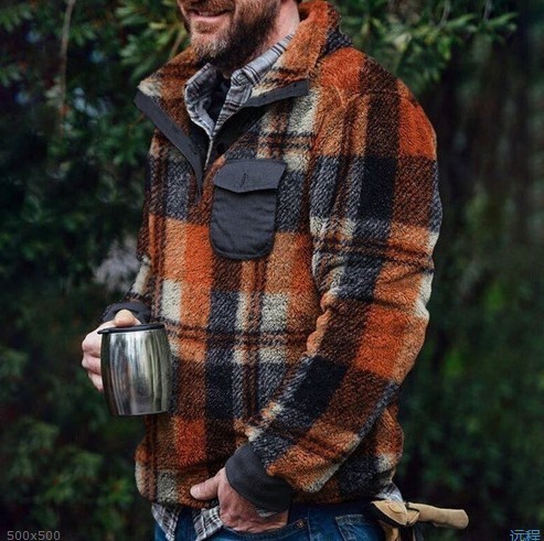 재고 2023 가을과 겨울 새로운 유럽과 미국의 남성 격자 무늬 양면 모피 크로스 국경 카디건 스웨터 패션 플러시 재킷