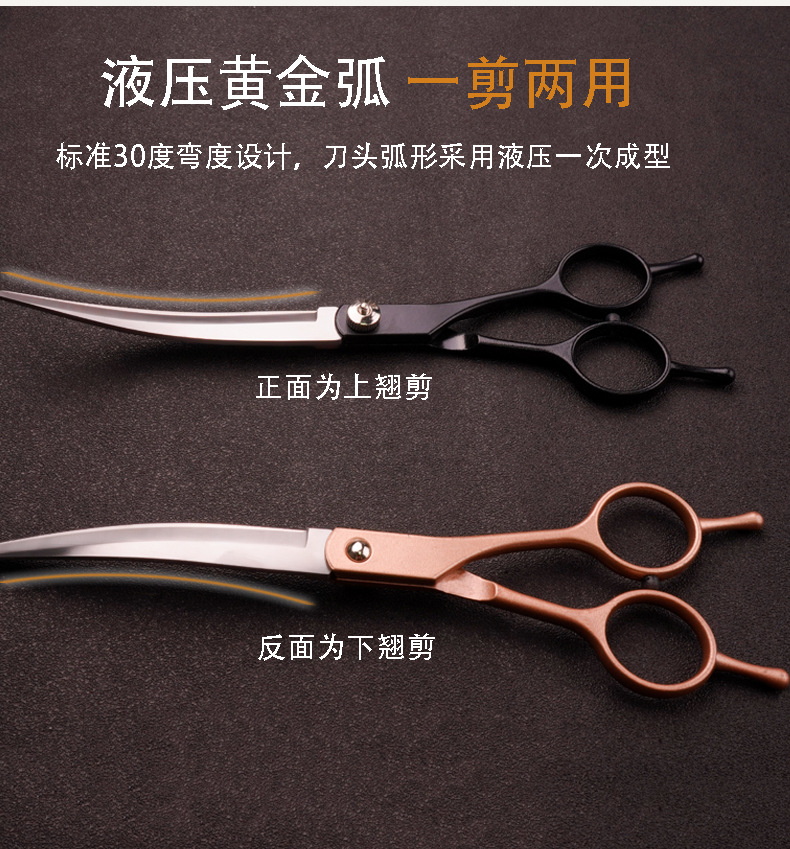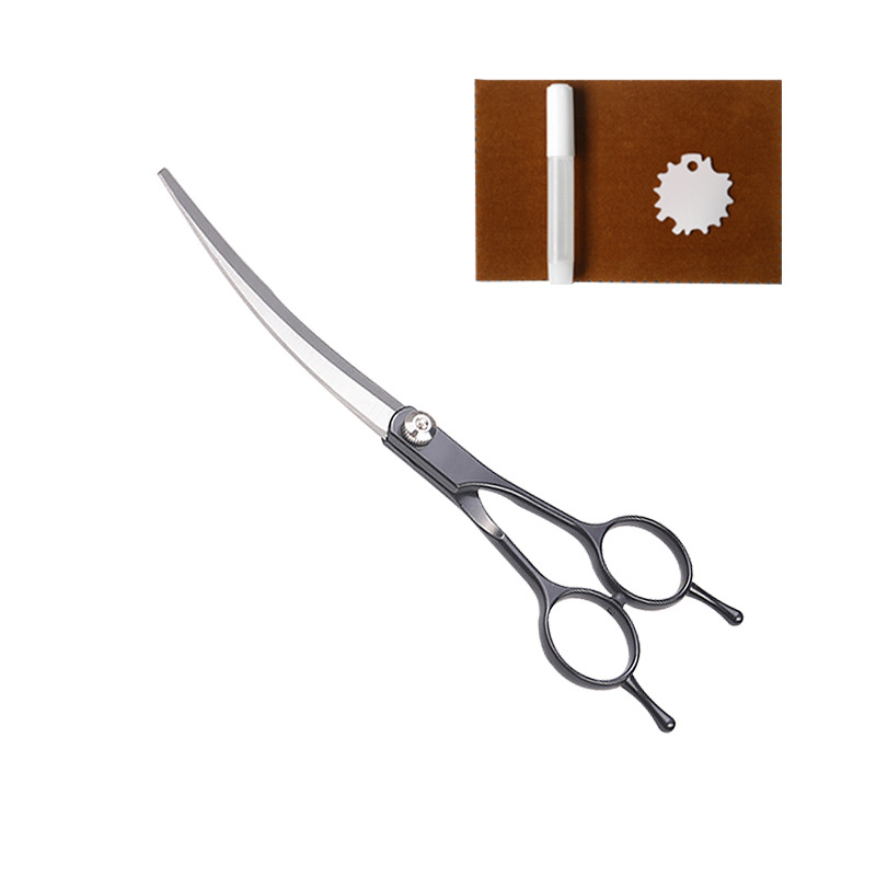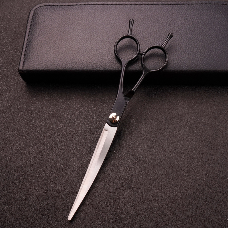 애완 동물 뷰티 가위 개 머리 절단 세트 7 인치 분할 검은 머리 가위 개 머리 다듬기 개 머리 곡선 가위 테디 이발스토어 가기