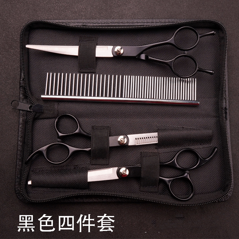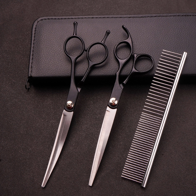 애완 동물 뷰티 가위 개 머리 절단 세트 7 인치 분할 검은 머리 가위 개 머리 다듬기 개 머리 곡선 가위 테디 이발