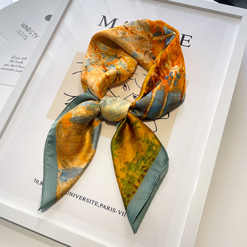 유화 70cm 사각형 스카프 여성의 세련된 봄과 가을 어울리는 셔츠 세트 전문 장식 목 보호 스카프