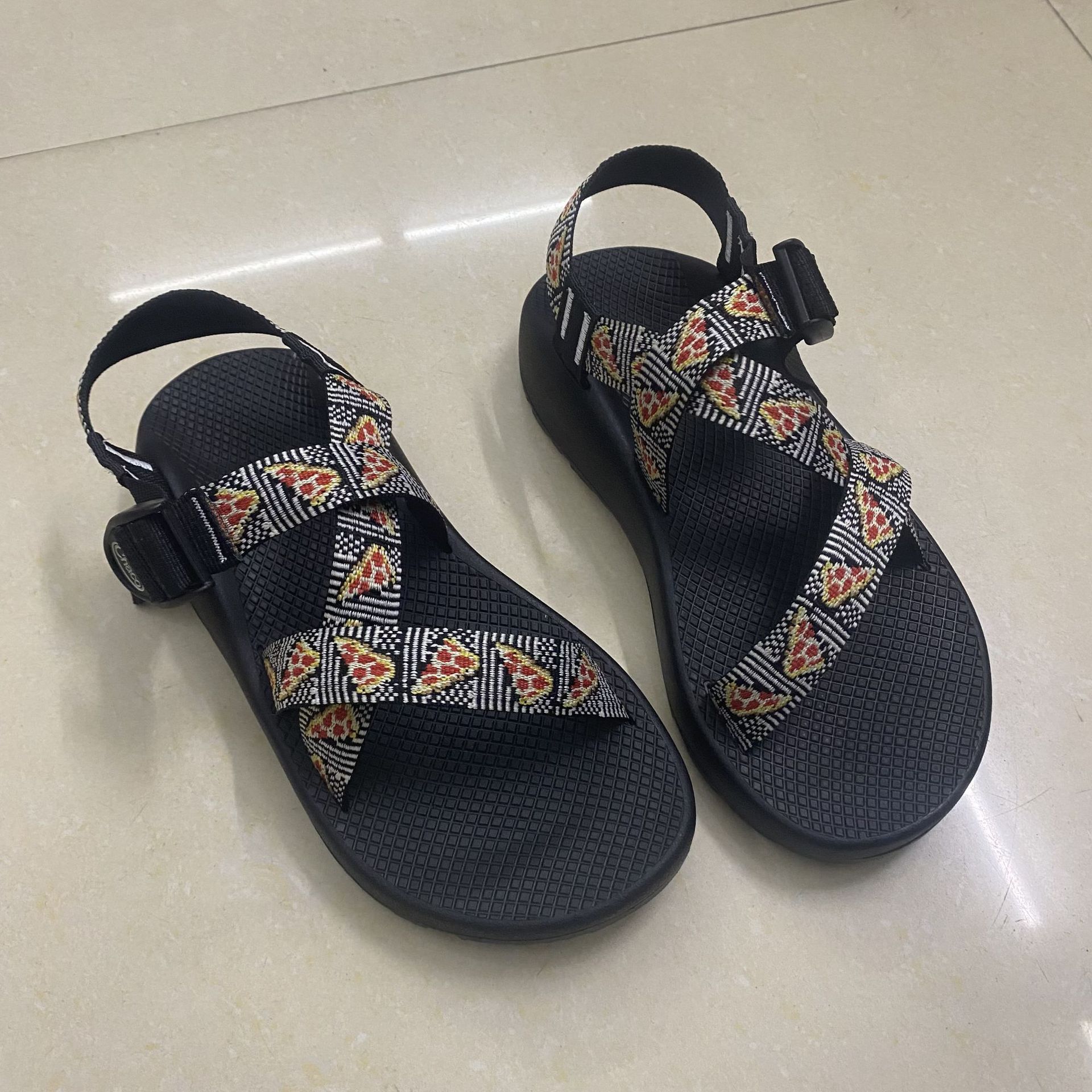 厂家批发外贸原单CHACO溯溪鞋莞产彩色织带交叉可调节织带沙滩鞋