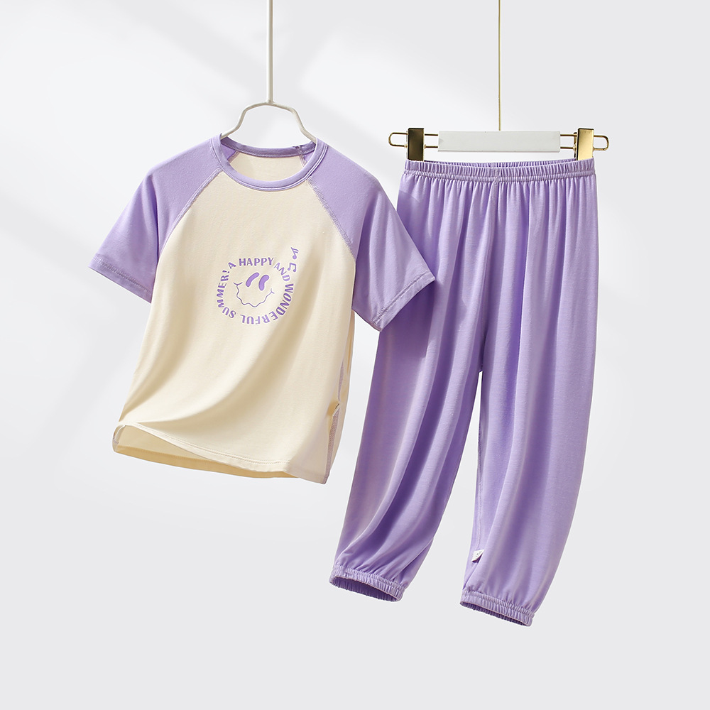 어린이 모달 잠옷 여름 남아 반팔 긴바지 여아 홈웨어 세트 아이스 실크 남아 에어컨 의류 얇은