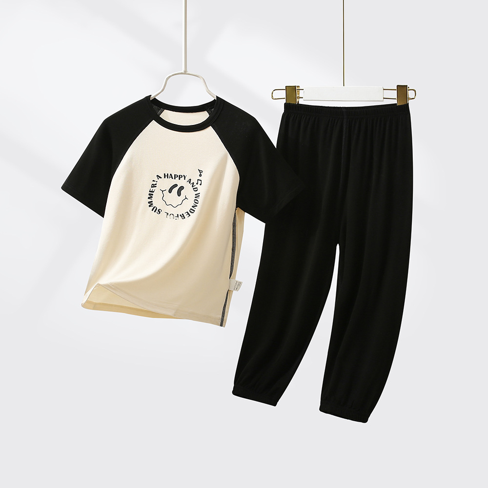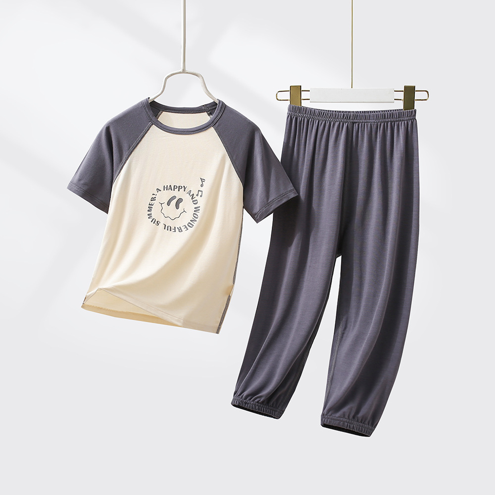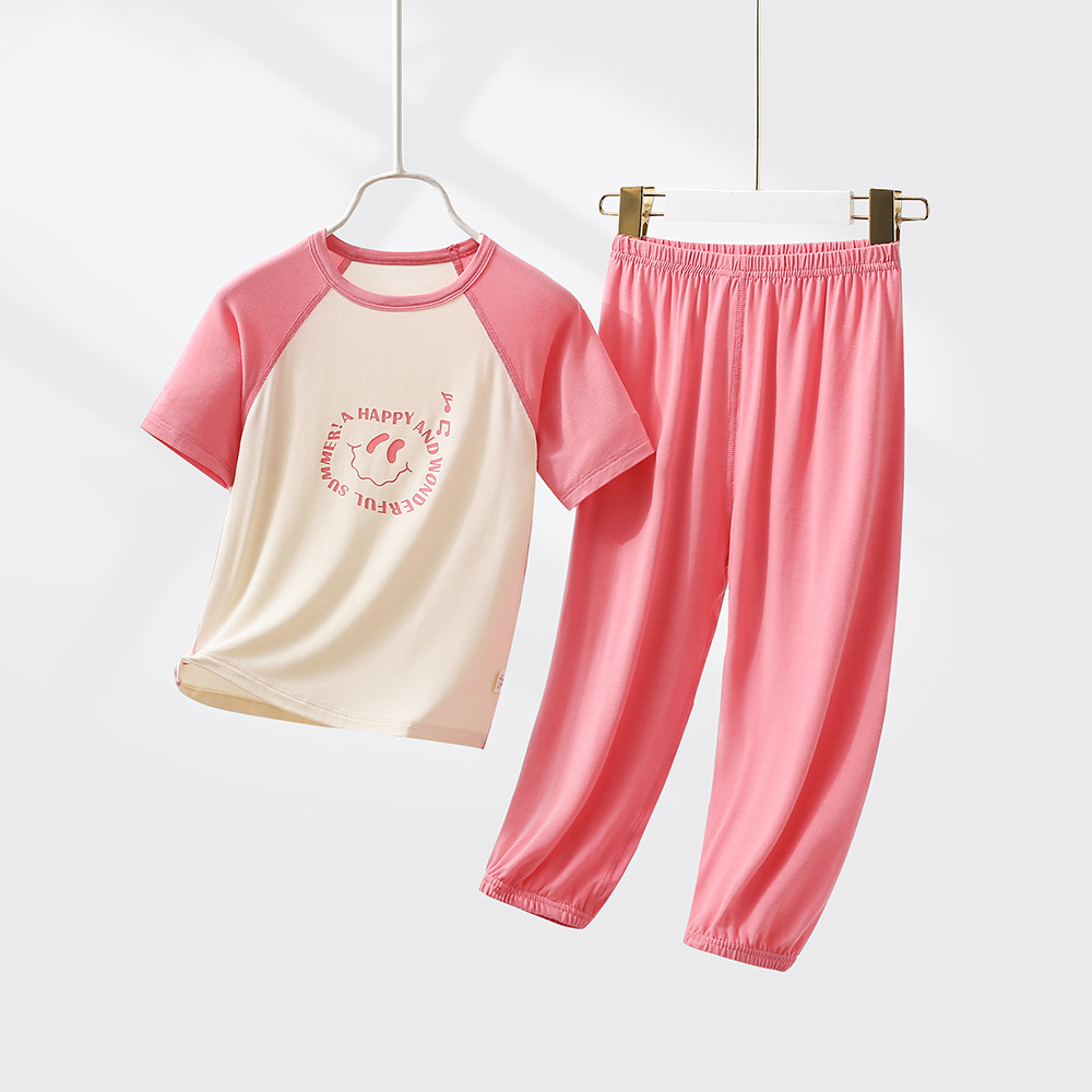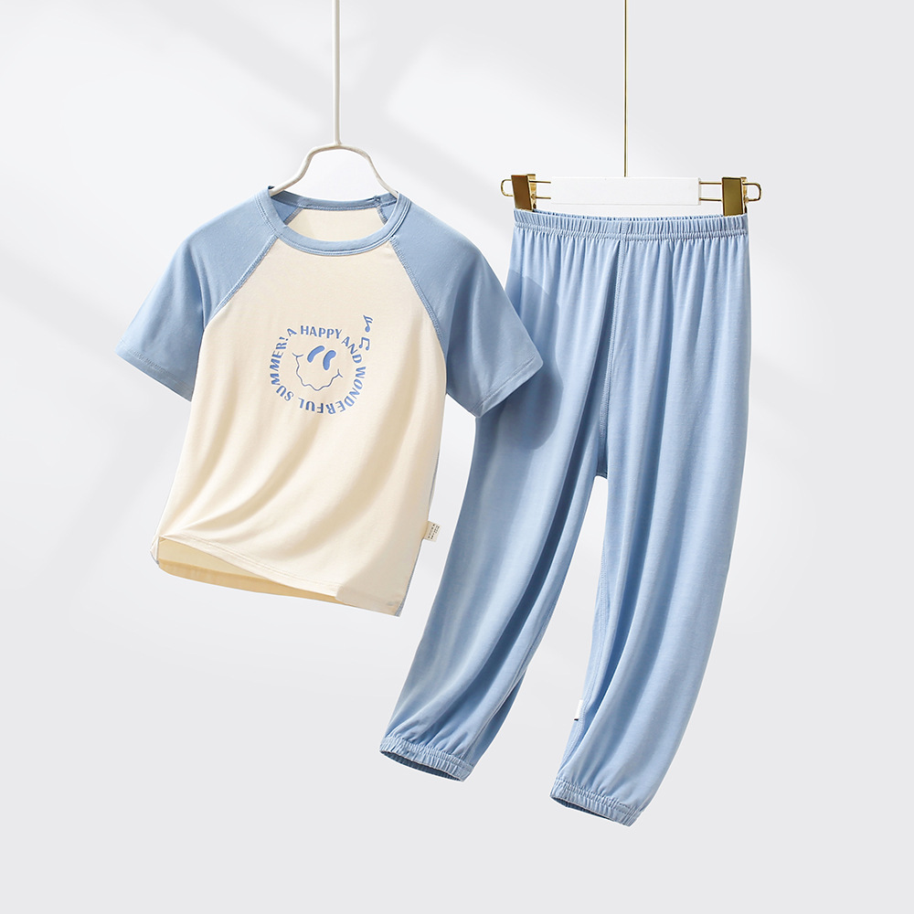 어린이 모달 잠옷 여름 남아 반팔 긴바지 여아 홈웨어 세트 아이스 실크 남아 에어컨 의류 얇은스토어 가기