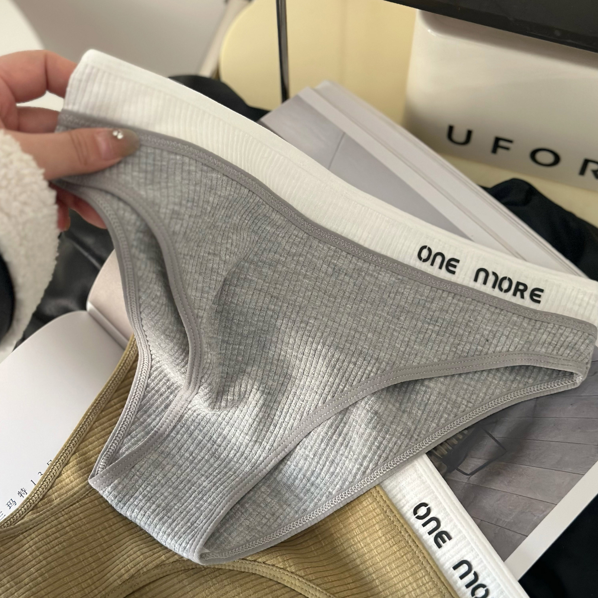 时尚辣妹8608高阶美式运动螺纹棉质拼接少女中腰内裤运动风丁字裤