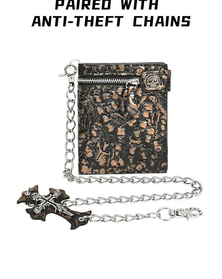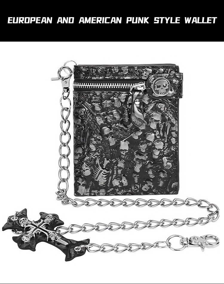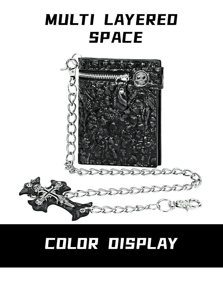 아마존 베스트셀러 지갑 고딕 스타일 펑크 지갑 데스 스켈레톤 백 오토바이 체인 남성용 지갑
