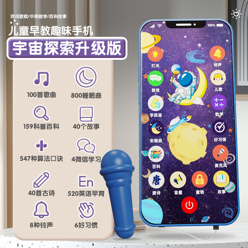 Tiktok의 같은 스타일 어린이 조기 교육 재미 휴대 전화 스마트 학습 기계 당나라 시 300 병음 전화 이야기 기계스토어 가기