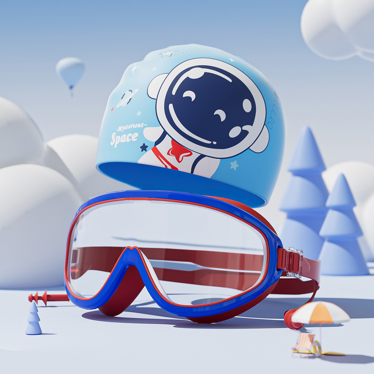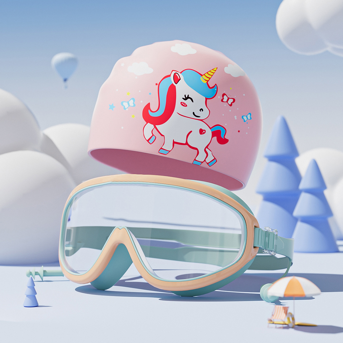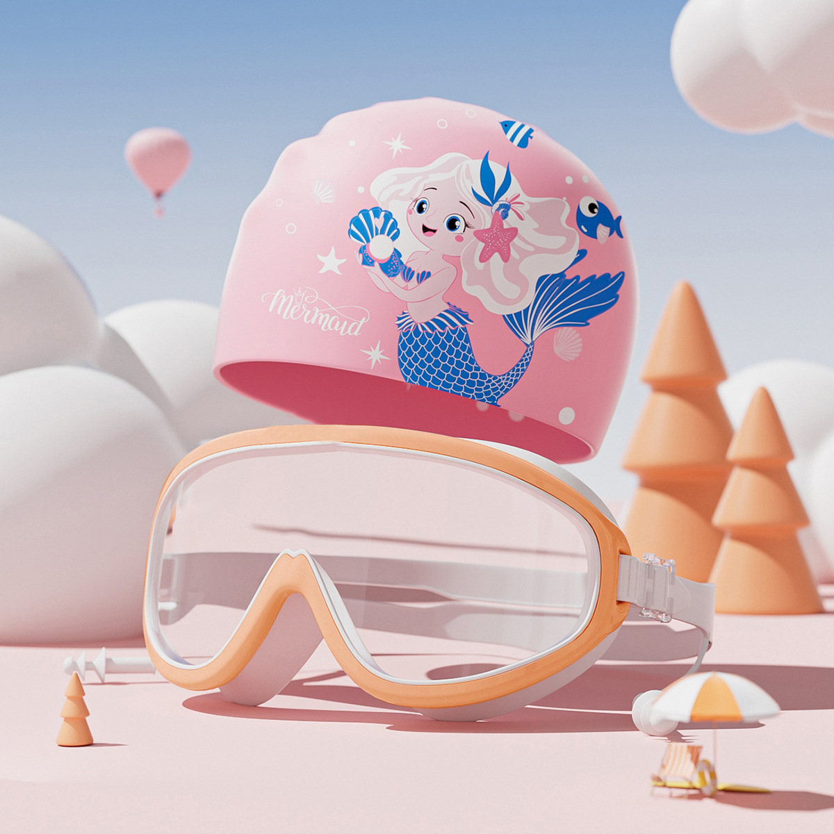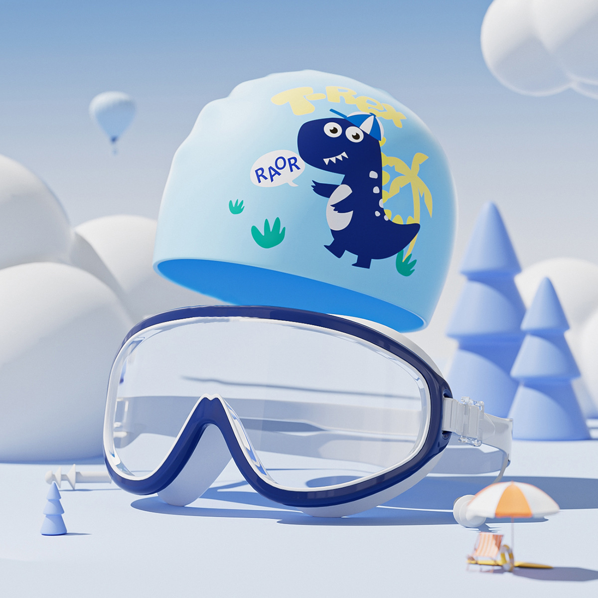 어린이 수영 고글 소년 소녀 HD 방수 안개 방지 대형 프레임 수영 안경 전문 다이빙 고글 수영 캡 세트 장비스토어 가기